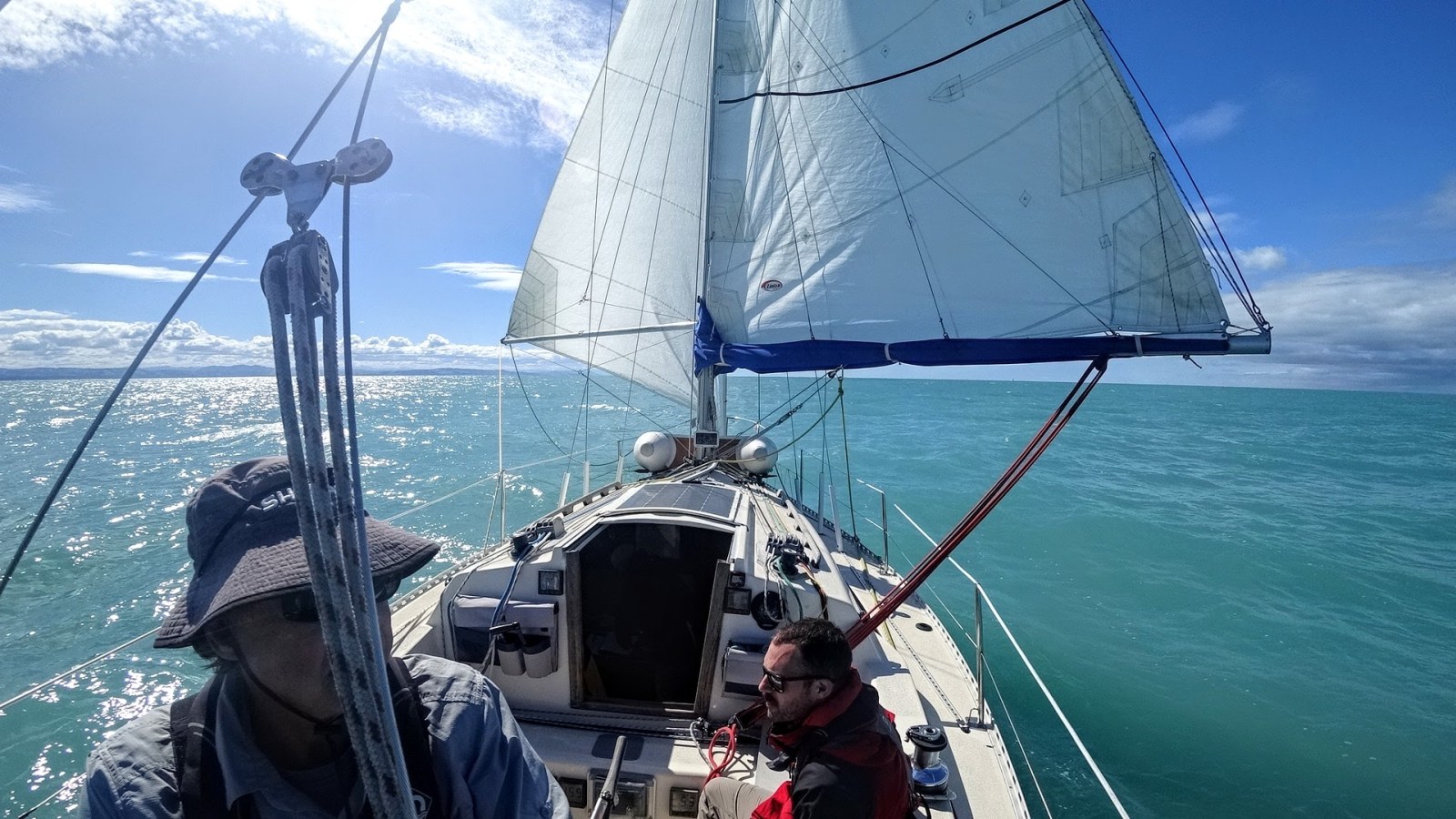 We slipped our lines at Te Ana Marina at 0800 hrs and logged our trip report to Maritime Radio on the VHF. With Scott on helm we hoisted the No. 2 Jib with full mainsail and headed out into the morning sun. Bye-bye Lyttleton – it’s been great!