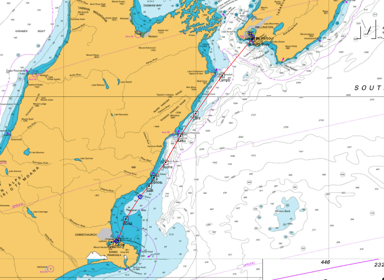 On Thursday we awoke to a beautiful morning in Lyttelton’s Te Ana Marina. Malcolm and Peter dashed up to the Lyttleton Coffee Company for one last infusion of their superb coffees while I had a final look at the weather forecasts, loaded the route plan into OpenCPN, finished preparing the boat and did a safety briefing with Scott.