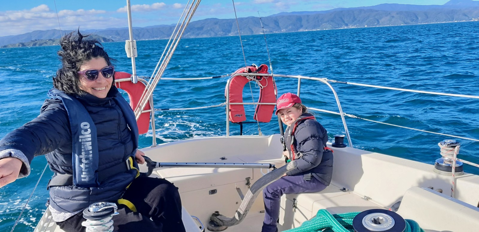 As we cleared the shelter of Port Nicholson the wind came up a bit strong so I put a reef in the main to make for a more comfortable ride. We then had good sailing north up the harbour as Marcia became more confident on the helm.