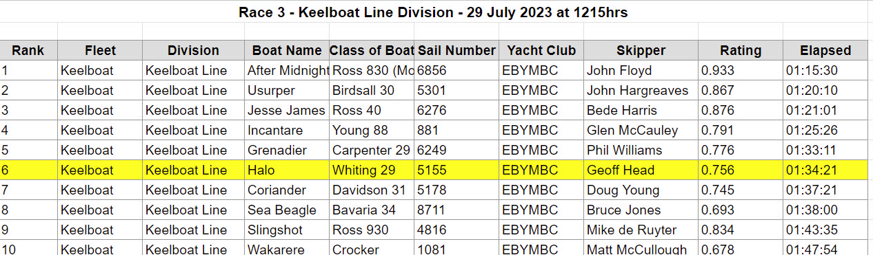 Back at the club for the post-race socialising, the results were announced. Halo came 6th on line and 7th on corrected time.