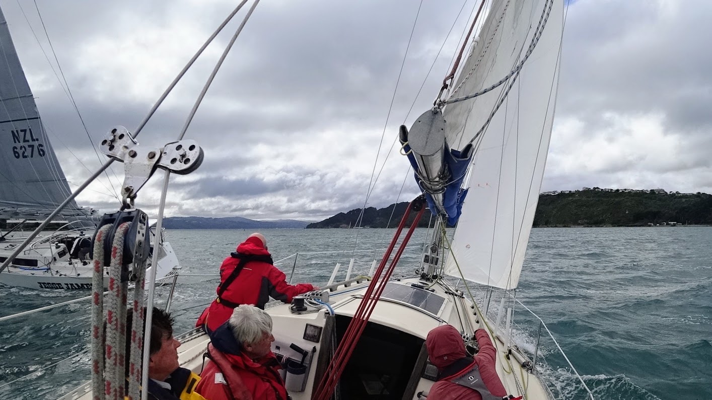 We then tacked our way up the bay. The wind was increasing by now and we were struggling to point as high as the other boats. We probably would have been better off with the reef in. Tamerlane and Incantare were already ahead of us before we reached Greta Point.