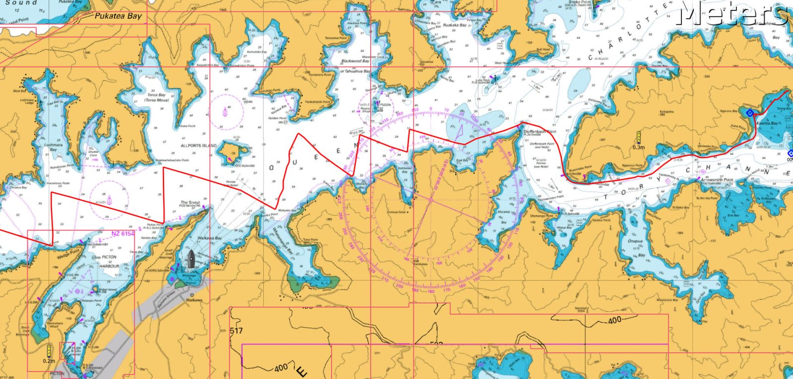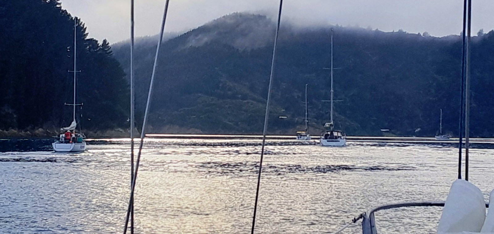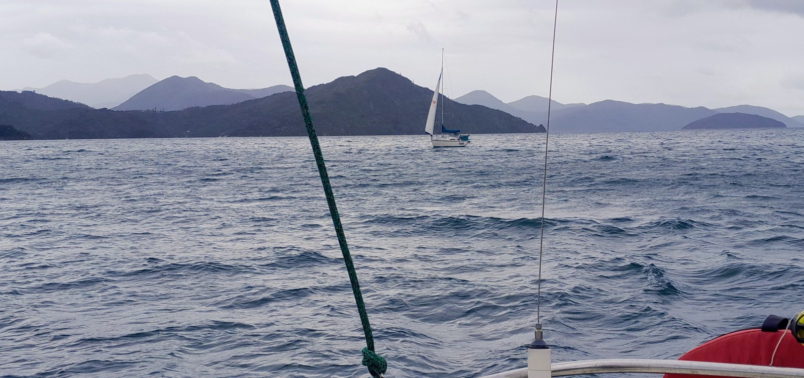 We made fairly slow progress against the light northerly breezes and eventually turned on our engines to motor the rest of the way into Tory Channel towards Ngaruru Bay.