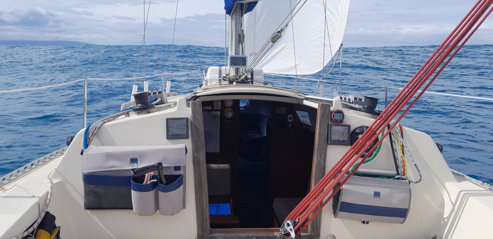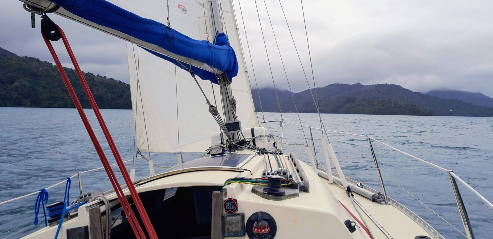 We cast off at 1400 hrs after lunch and set sail to Ngaruru Bay which would be our final night before the crossing. Using ‘Ernesto’ to steer I had some fun using the Auto Tack mode which automatically tacks the boat through 100 degrees while I only need to handle the sheets. I’m starting to get the hang of this single-handed sailing 🙂