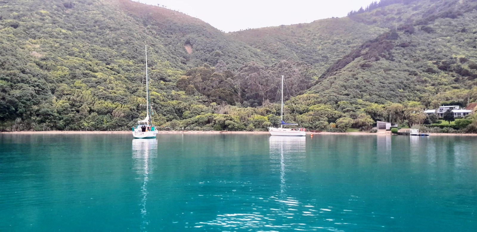 Phil had spent the night before on Grenadier at a mooring at Double Cove and we both sailed round to Picton in the morning to meet up at Le Cafe for a coffee and chat about possible cruising options for the next two days. With the southerly still blowing we agreed that Governors Bay in Grove Arm would be a good sheltered mooring.