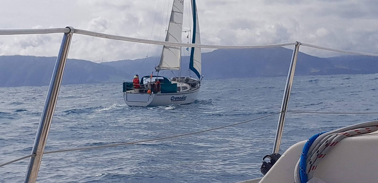 Using my new jib hoisting system I set the headsail without leaving the cockpit. With only about 5 kts of NE breeze I decided to keep the engine going. Even though there was minimal wind it was still fairly rough all the way across the strait. I kept close to Grenadier as we agreed to keep an eye out for each other throughout the passage.