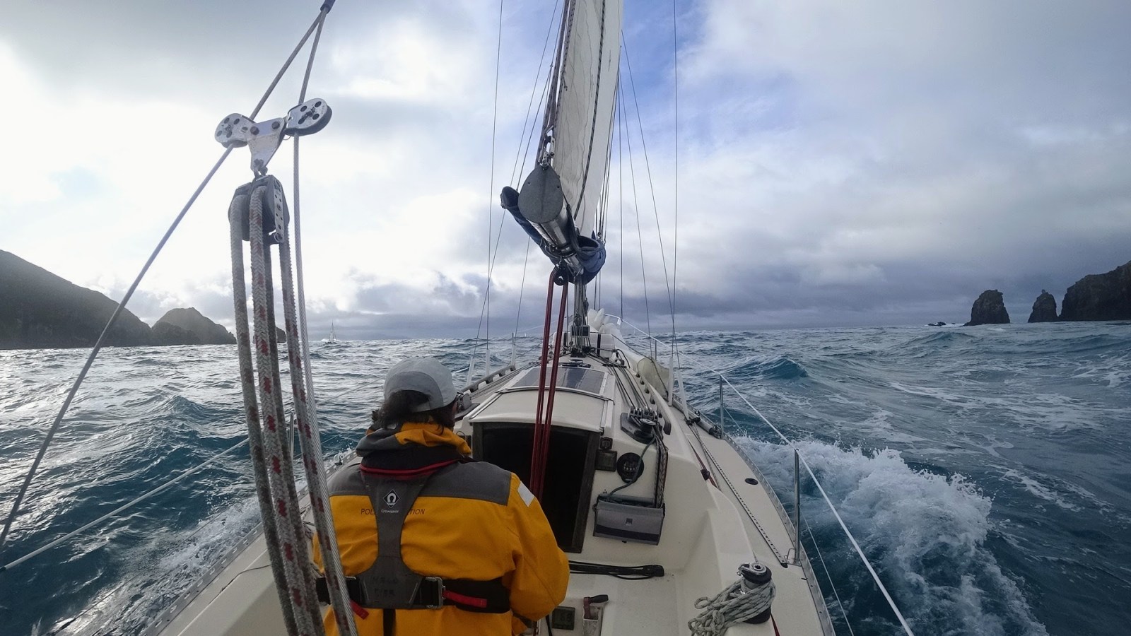 The waves always look smaller in the photos and I hung on tight while bouncing my way through the swells. After what seemed like ages the waves started to die down. I switched on ‘Ernesto’ our trusty auto tiller and set the course for the first waypoint about 3 miles south of Karori Rock.