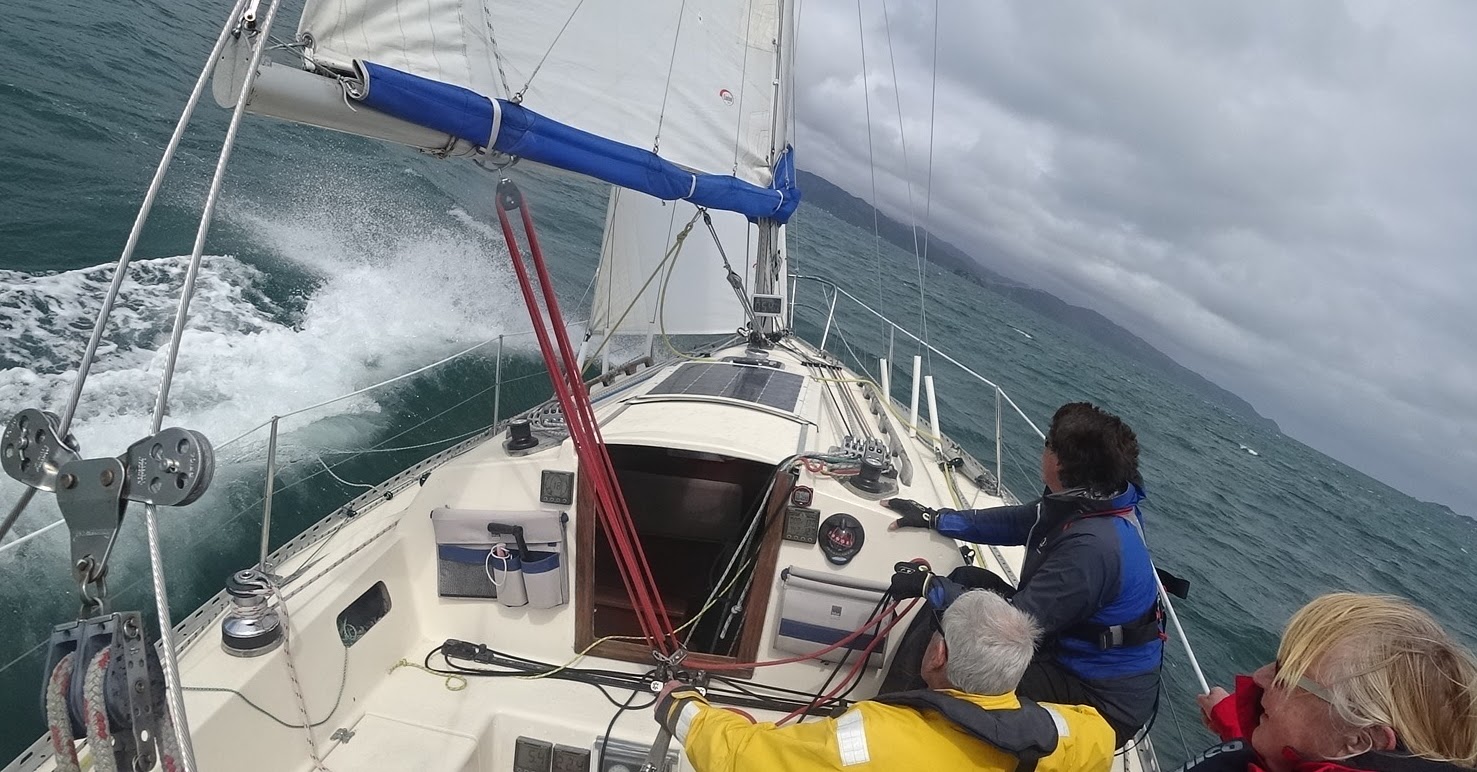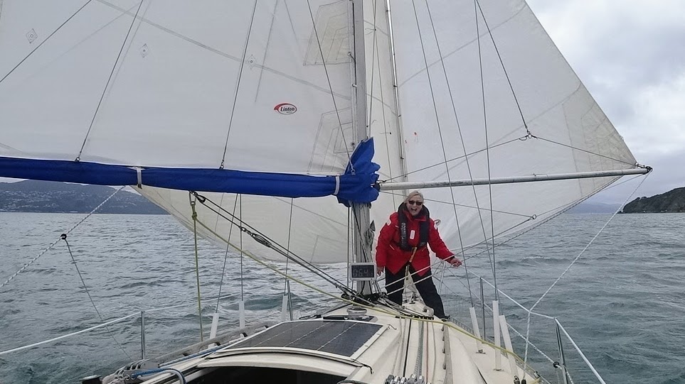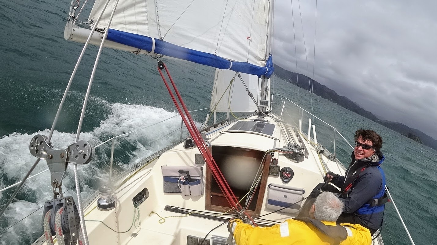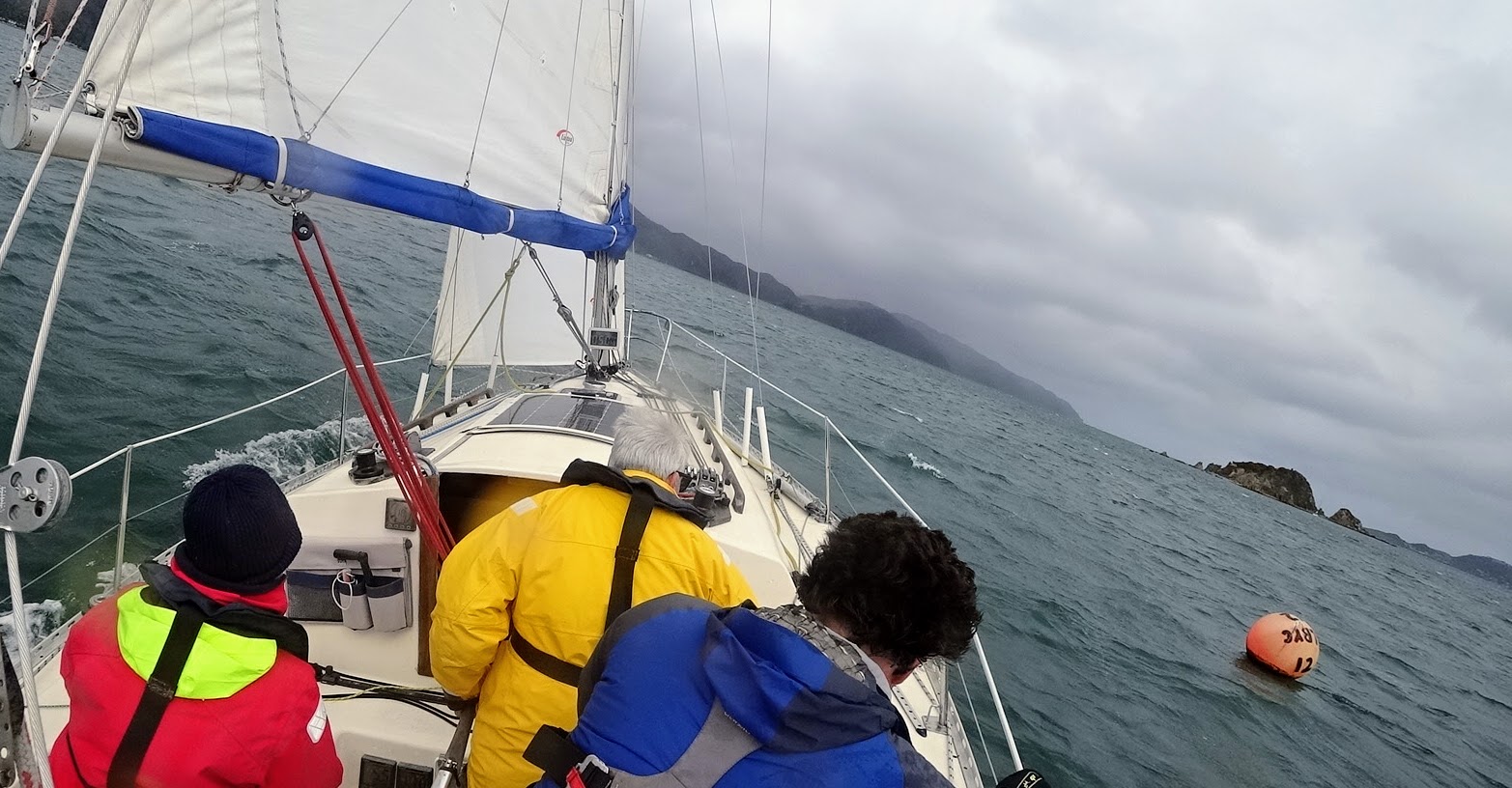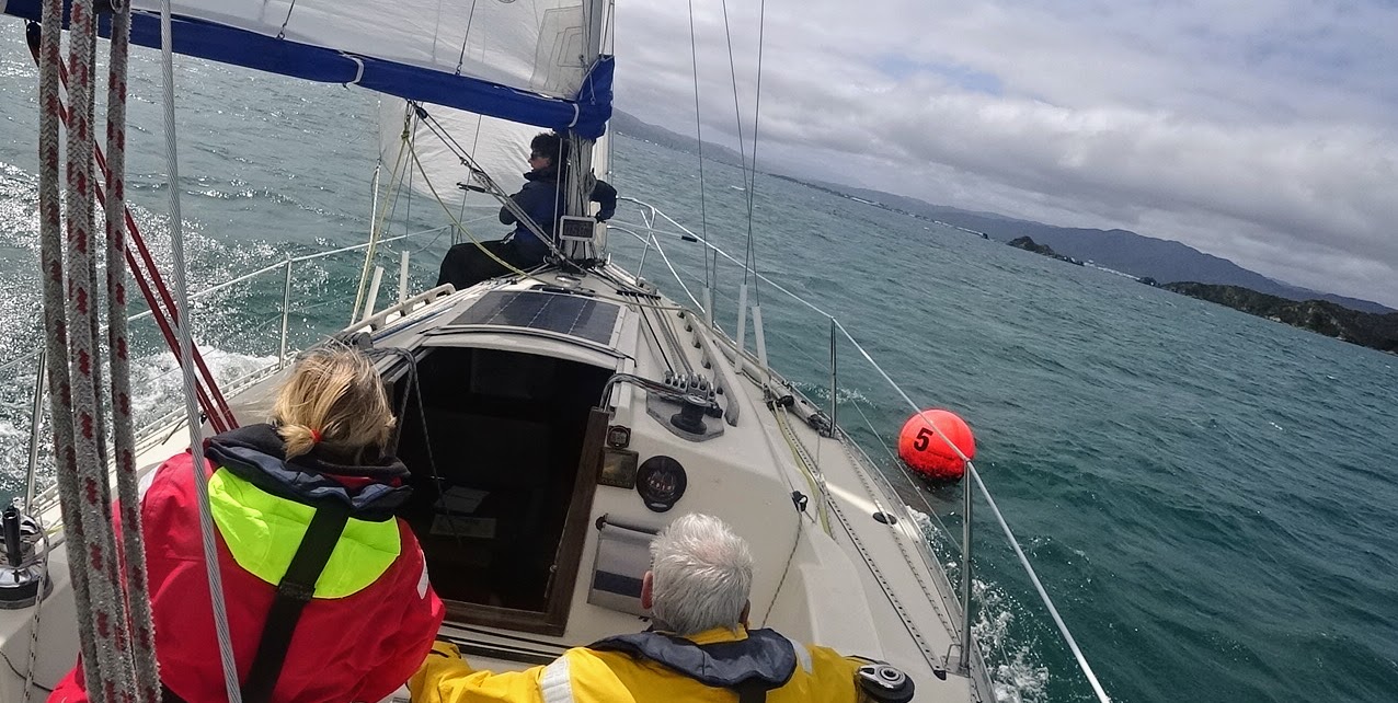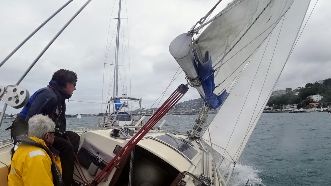 As we cleared Pt Halswell, however, we were now on a broad reach as we headed to where the chart plotter indicated the mark should be. The poled out jib was now not pulling well so we then took the pole down and sailed with the jib and genoa both on leeward.