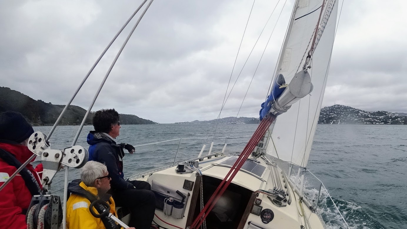 Once we cleared the wind shadow of Pt Halswell it was back to close-hauled up Evans Bay getting a lift on the first tack towards Balaena Bay, then across to the point between Shelly Bay and Shark Bay. Then one last long beat past Greta Point dodging the dinghy sailors and moored boats to cross the finish line just in front of the start box at 1449 hrs.