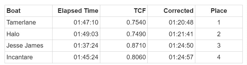 After packing up Halo we went back to the club. Phil announced the line results but as Rowdy was away the corrected handicap results won’t be published until later in the week. In the meantime, using the RaceQs timings my estimate of the results: