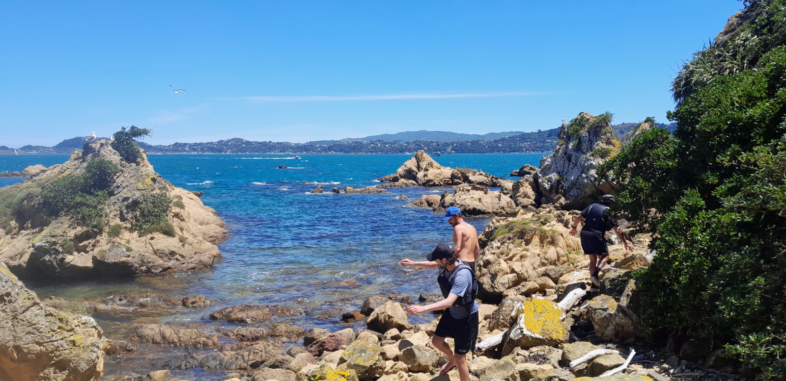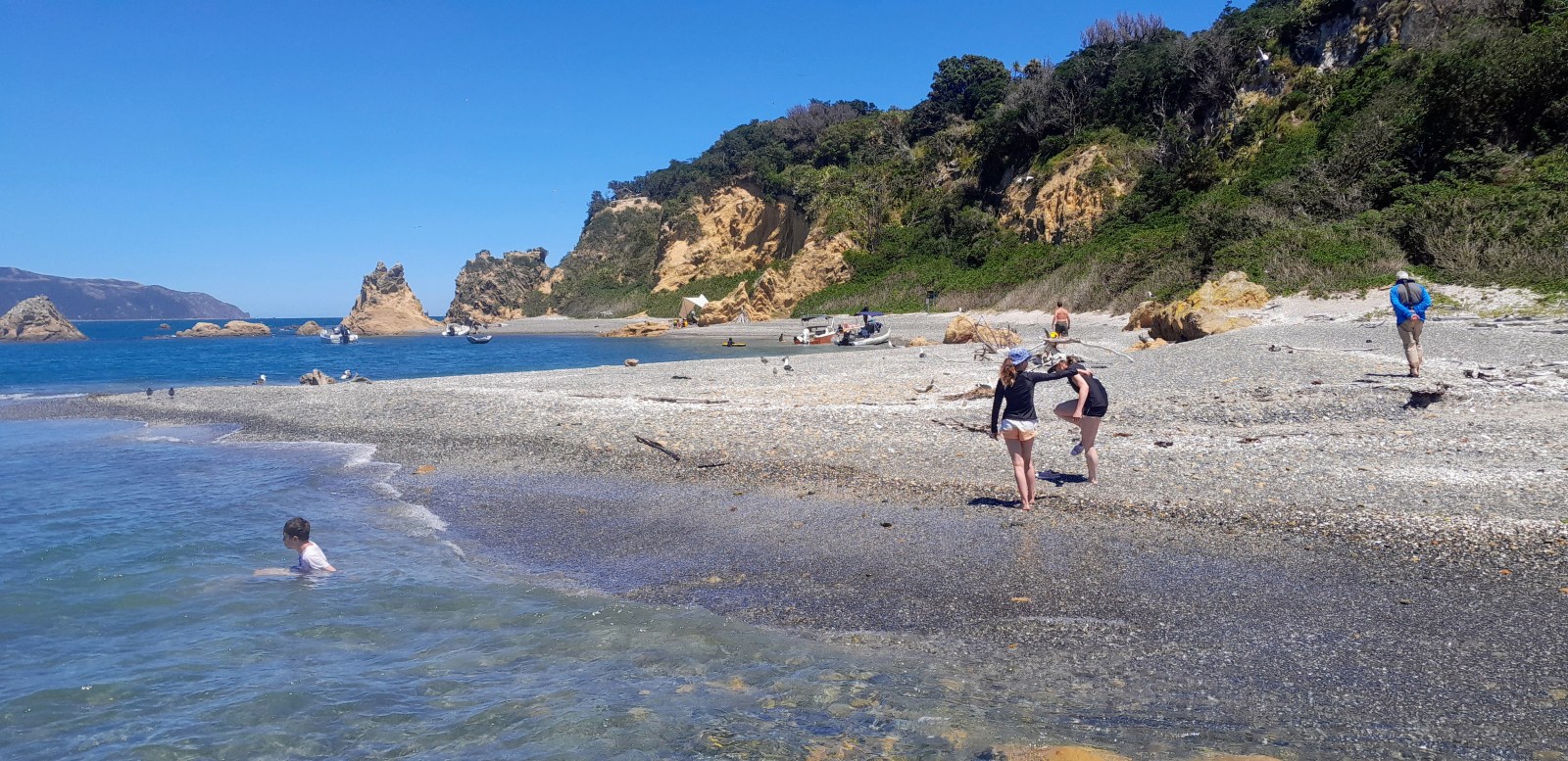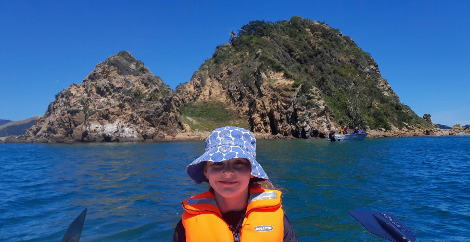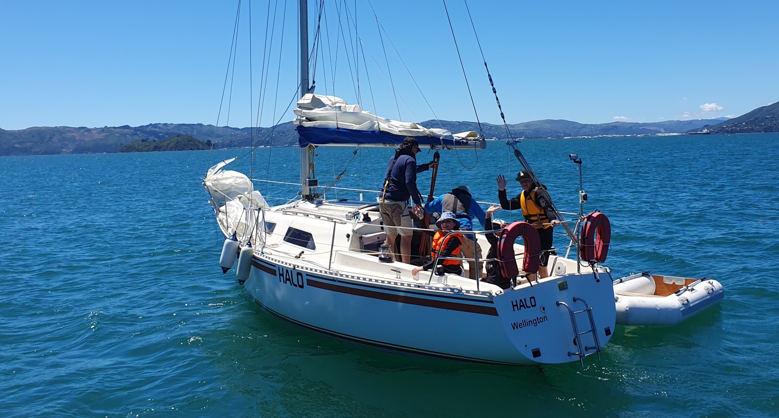 Once we were out of the shelter of Ward Island the southerly was 12-15 kts and we had a fun sail back home at 6 kts with Murray on helm, me on sail trim, and Louise, Lucas and Chelsea holding on tight 🙂
