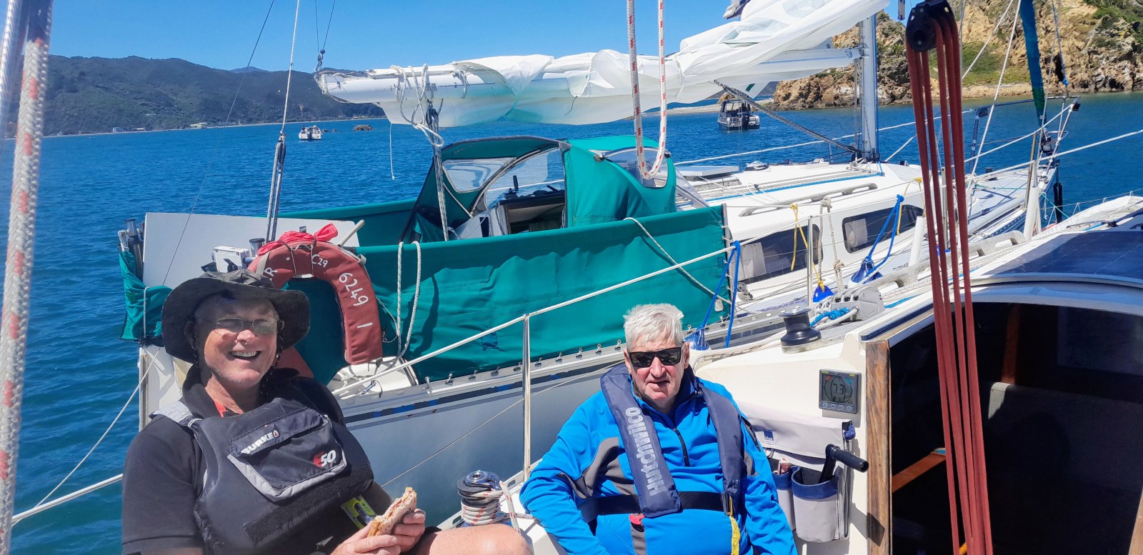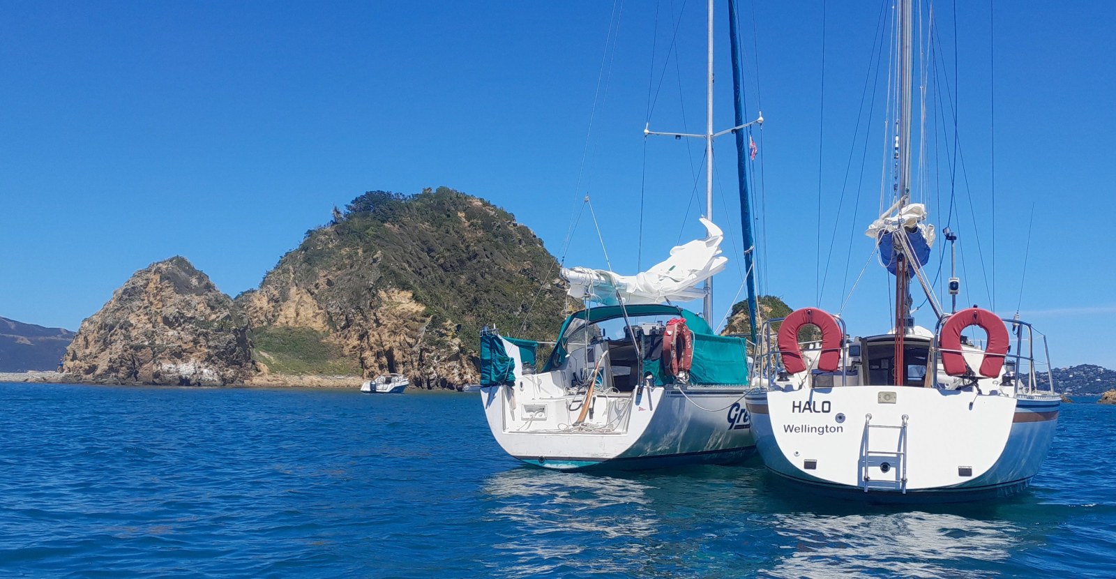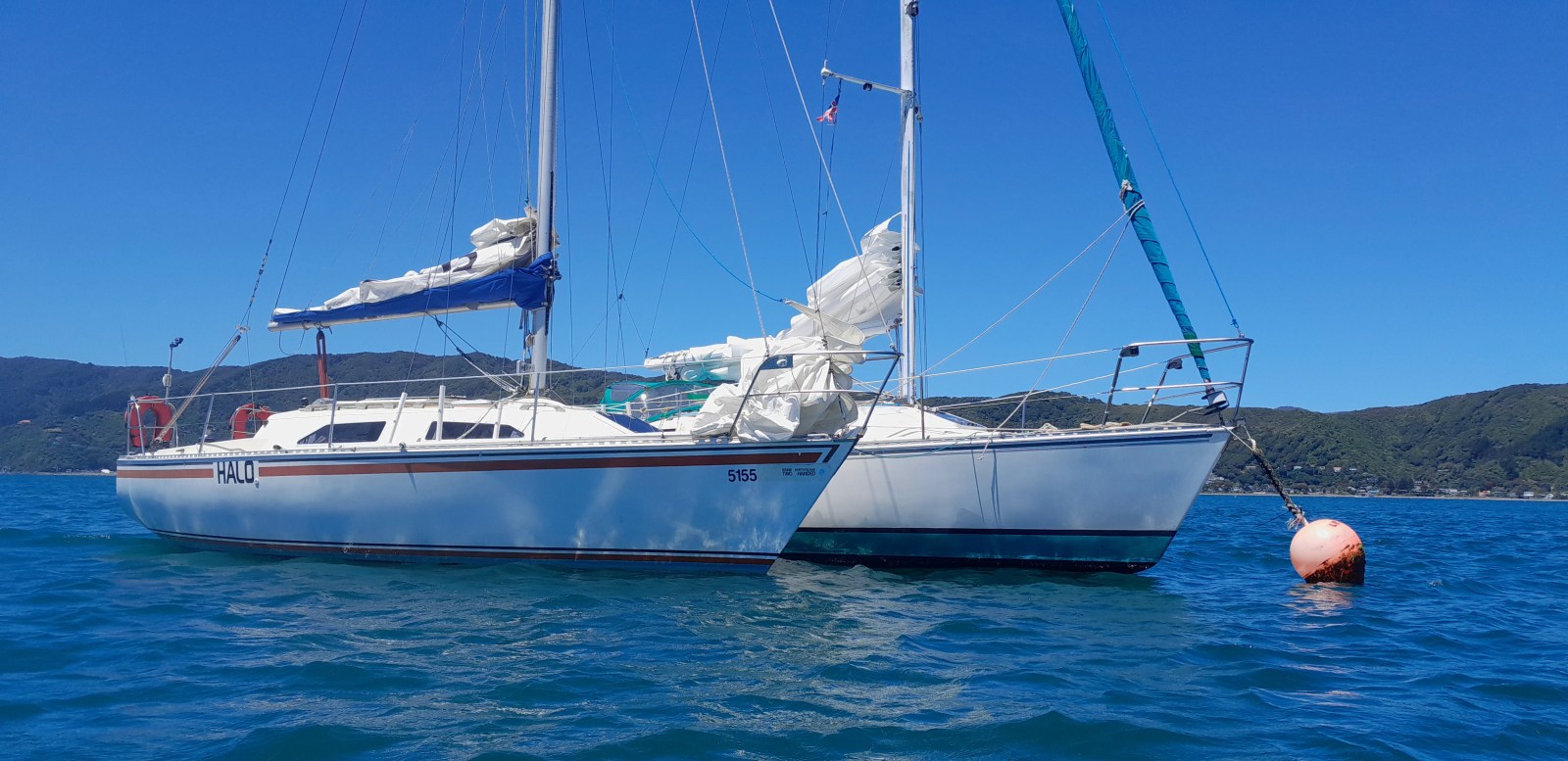 As we passed the entrance to Evans Bay we started to get some SE breeze and were able to turn off the engine. The wind then veered to a nice 10kts southerly after we passed Pt Halswell giving us a pleasant beam-reach sail across Wellington Harbour at around 5.5 kts. No sign of Grenadier yet so I called Phil and he confirmed he was now tied up at the mooring and was waiting for us with mooring lines at the ready.