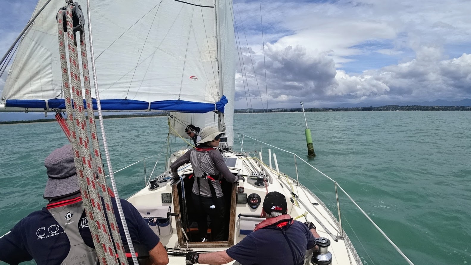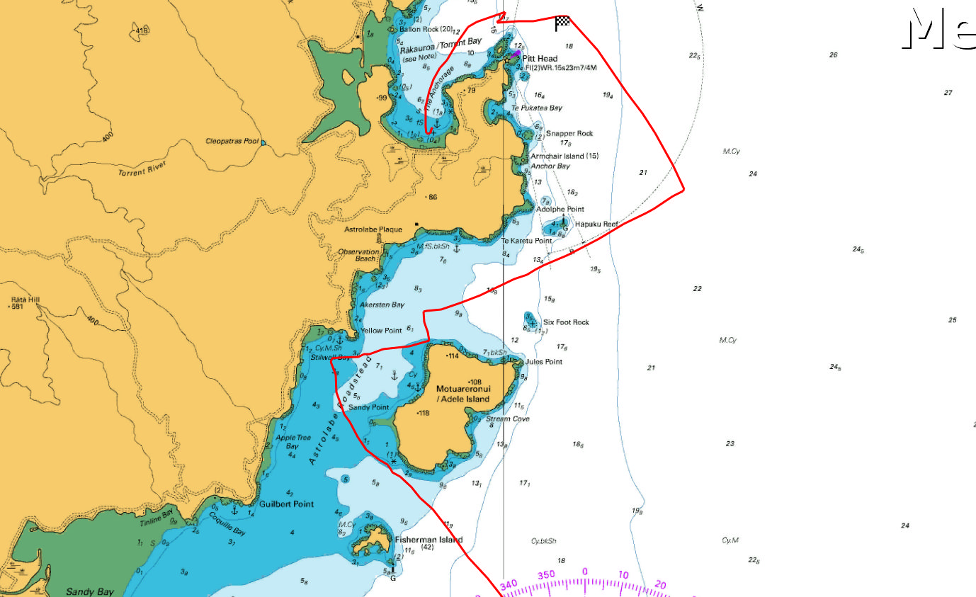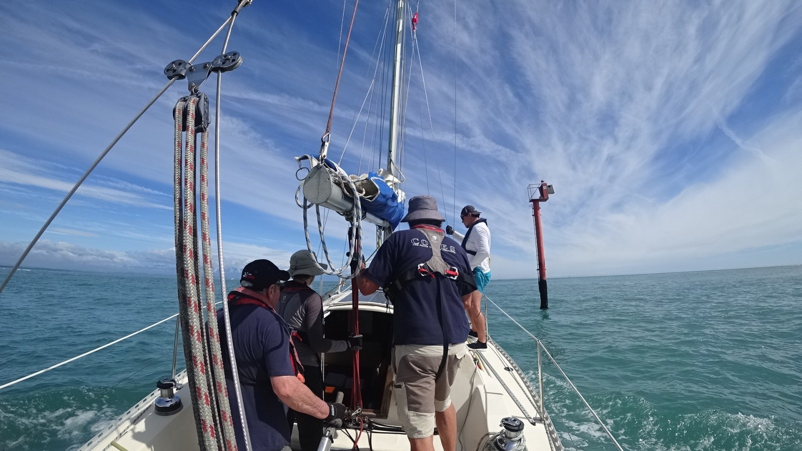 We finally crossed the finish line between the launch Transition and the north cardinal mark at 1434 hrs – beating Kakariki by about 10 minutes. Great work team Halo!