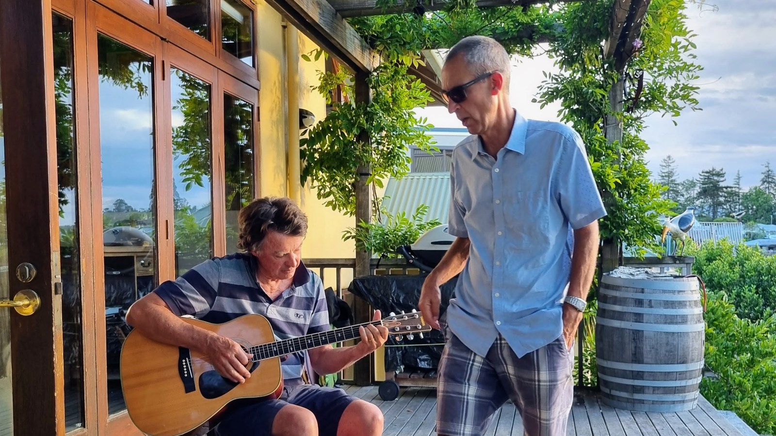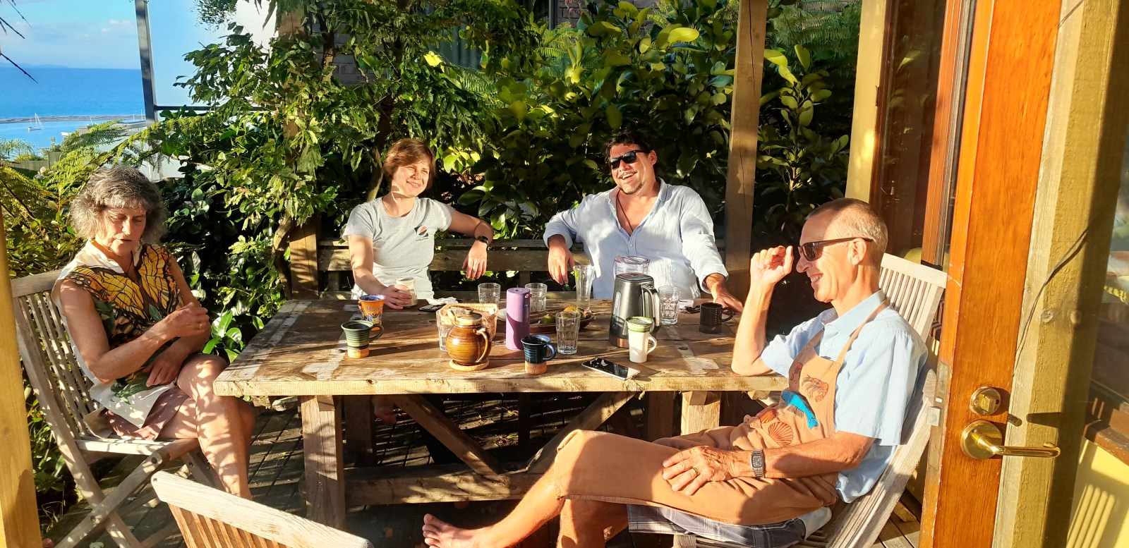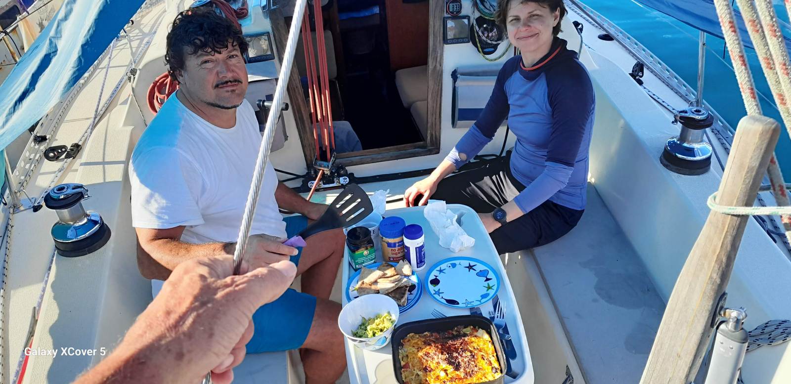 That evening Jim and Lindie very kindly invited the crew back to their place for a BBQ. A wonderful evening of delicious food, wine, some songs – and a beautiful sunset.