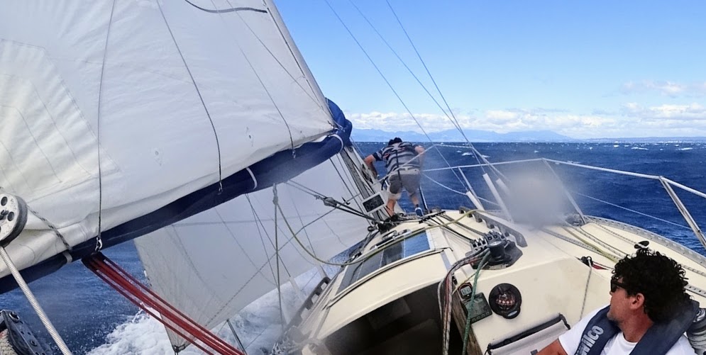 As we motored out towards the committee boat which was sitting off Frenchman Bay, it was announced on ch. 77 that due to the wind which had come up strong, the Cruising Division would not now be doing the Tonga Island circuit race and we would just be doing one last race today, back to Nelson starting at 1030 hrs.