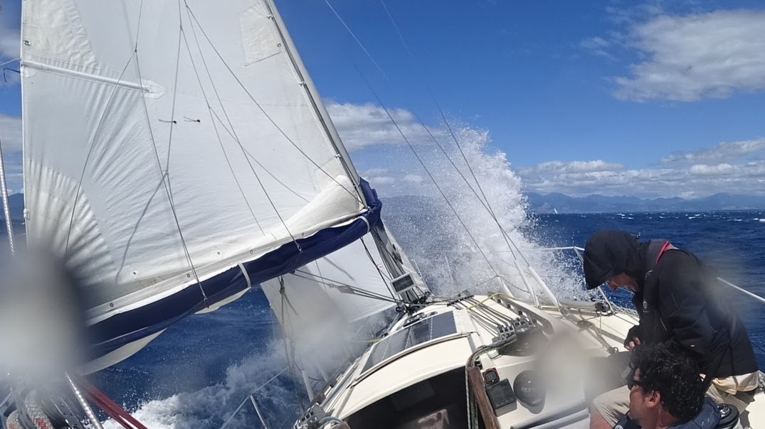 We were beating into the wind with the no. 3 jib and one reef in the mainsail for the rest of the way home. An endurance test for boat and crew with boat speed up to 9 kts at times as we surfed the waves and got totally drenched!