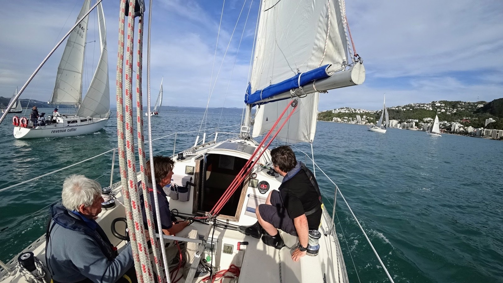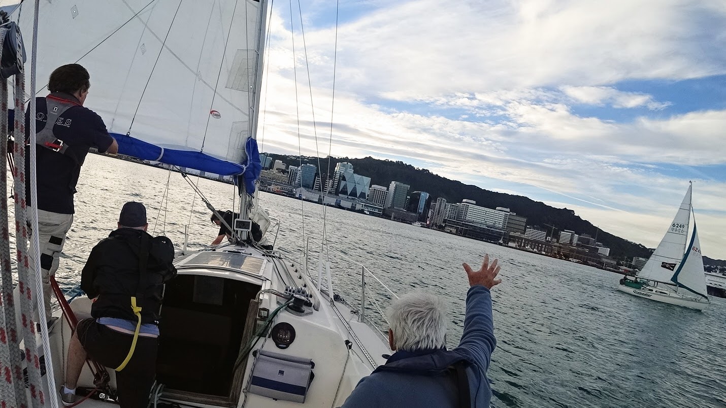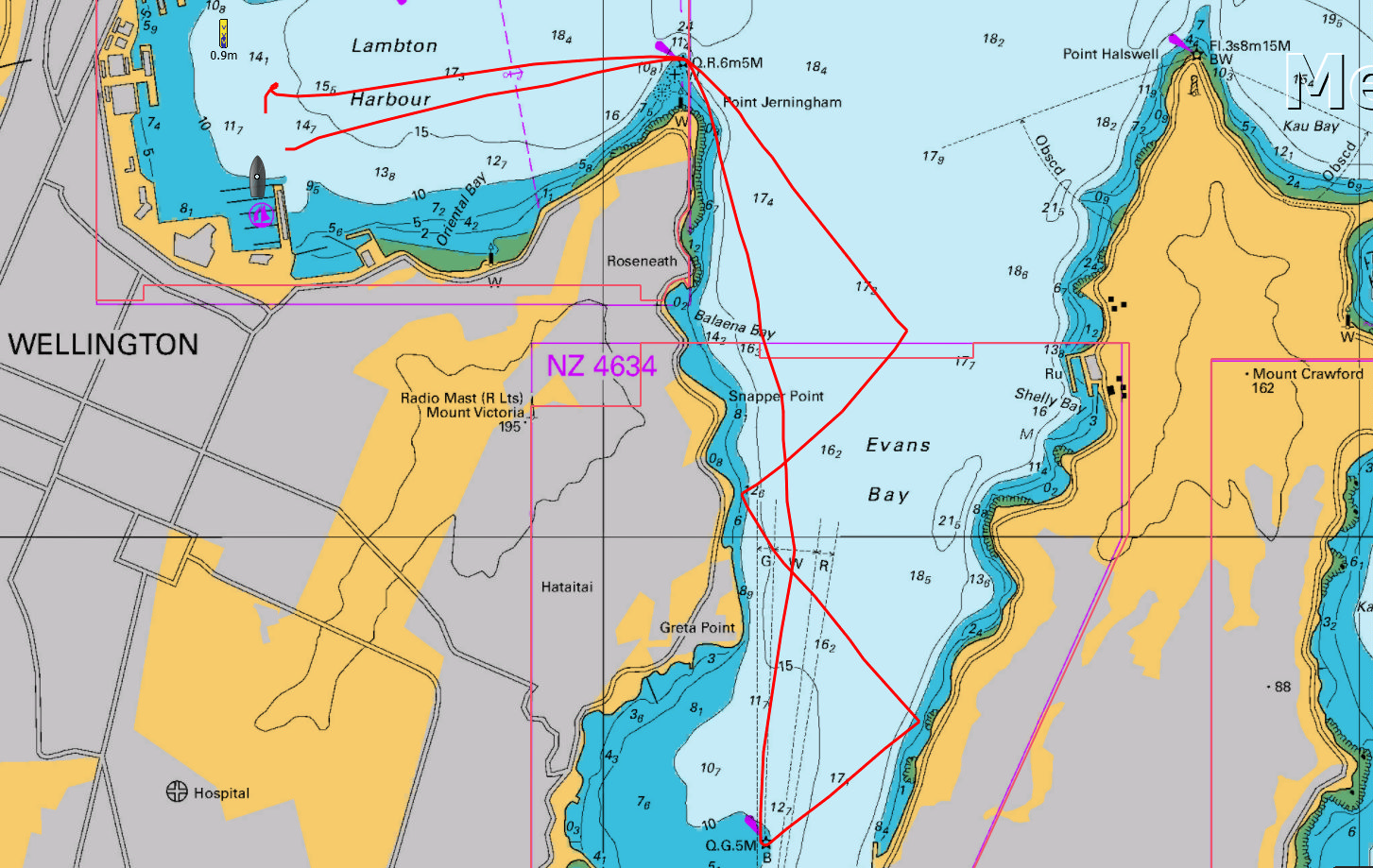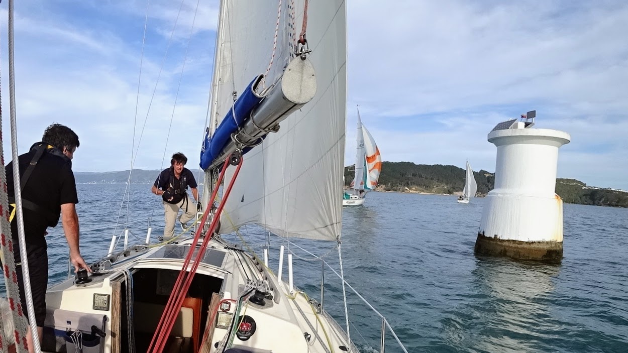 As we headed down Evans Bay the Race Control announced on Ch. 62 that the course was shortened. We would now go straight back to the finish after rounding Shoal Pile.