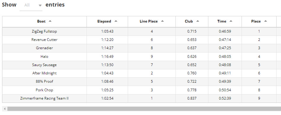 Back at the clubhouse results were announced. We came fourth on handicap. Great work team Halo!