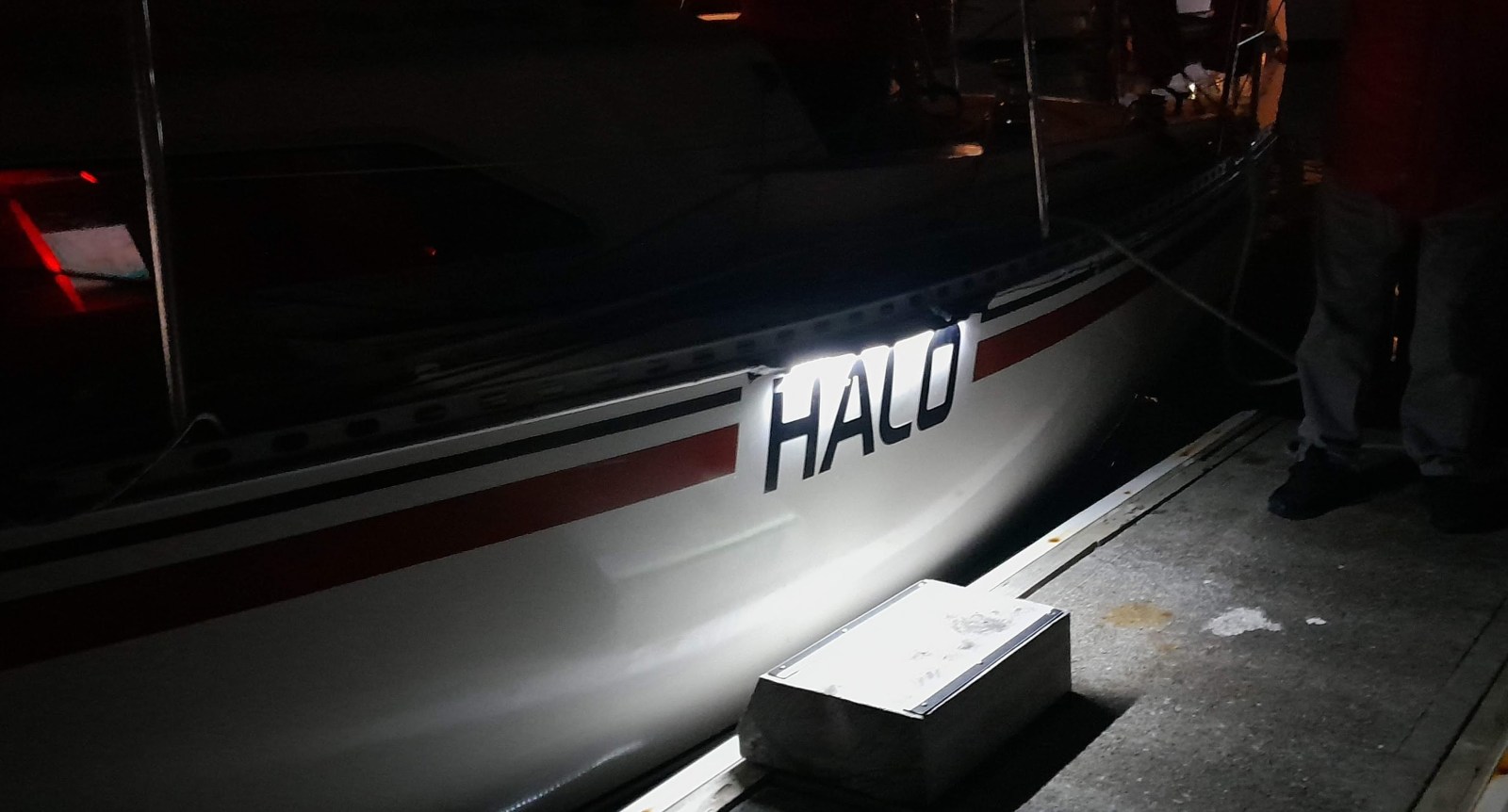 In preparation I attached the lights to the two life rings, checked the lifejacket lights, and navigation lights. I also attached our nice new LED strip lights which we had used in the recent 24 Hour Race.