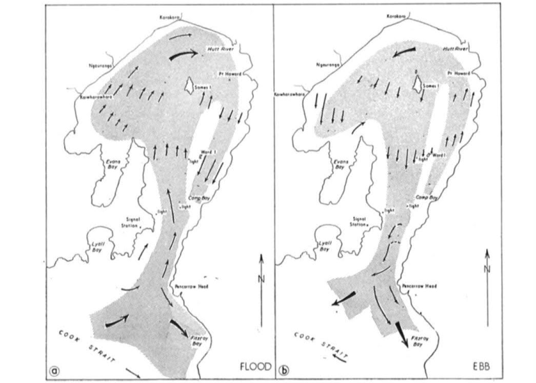 Forecast: Metservice Wgtn: Variable 5 kts, PredictWind Somes Island: NW 9 knots decreasing to 5 knots. Low tide: 1336 hrs.