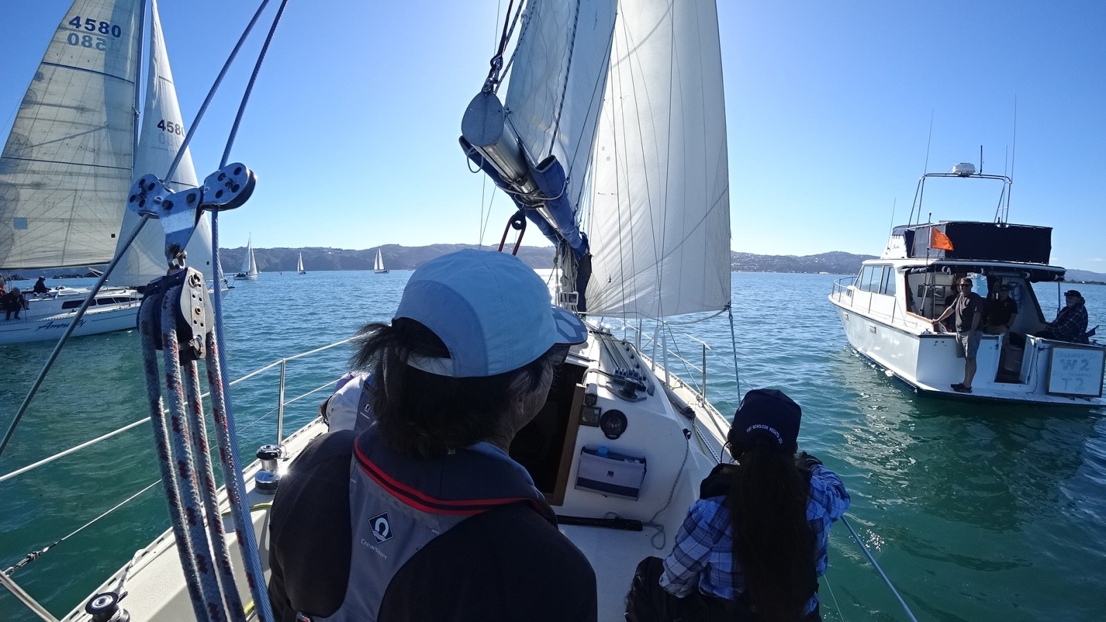 Another glorious Wellington day greeted us for our second day of sailing in the regatta. The plan was to have up to four round-the-cans races with the first race starting at 1030 hrs.
