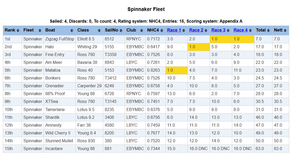 The second loop went well with Funny doing a great job on another spinnaker hoist as we sailed down to the mark and then back up to cross the finish line at 1421 hrs getting 5th place on handicap.