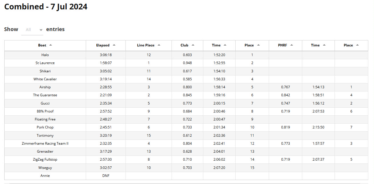 We rounded the mark at 1341 hrs just behind Wiseguy and Shikari. We now had a good lead on White Cavalier. We hoisted our maxi spinnaker again for the long run down to Falcon Shoals light. No sign of the forecasted southerly wind change.