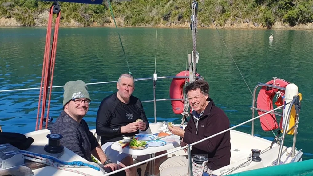 Tamerlane returned from Picton and the three boats rafted up for the evening. Bill joined us on Halo for dinner. We enjoyed a wonderful pre-prepared Beef Bourguignon. Thank you Graciela!