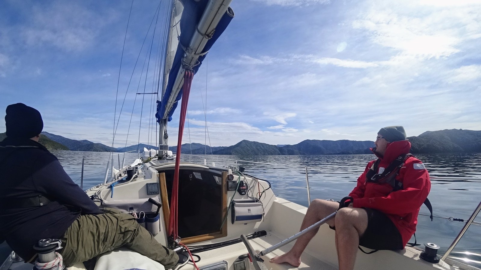 Clearing Palmer Head and keeping a lookout to avoid the cray pots, we turned west towards Sinclair Head. The wind was a nice 15 kts on the beam giving us good 6.5 kts boat speed. Jamie was doing a great job on helm.