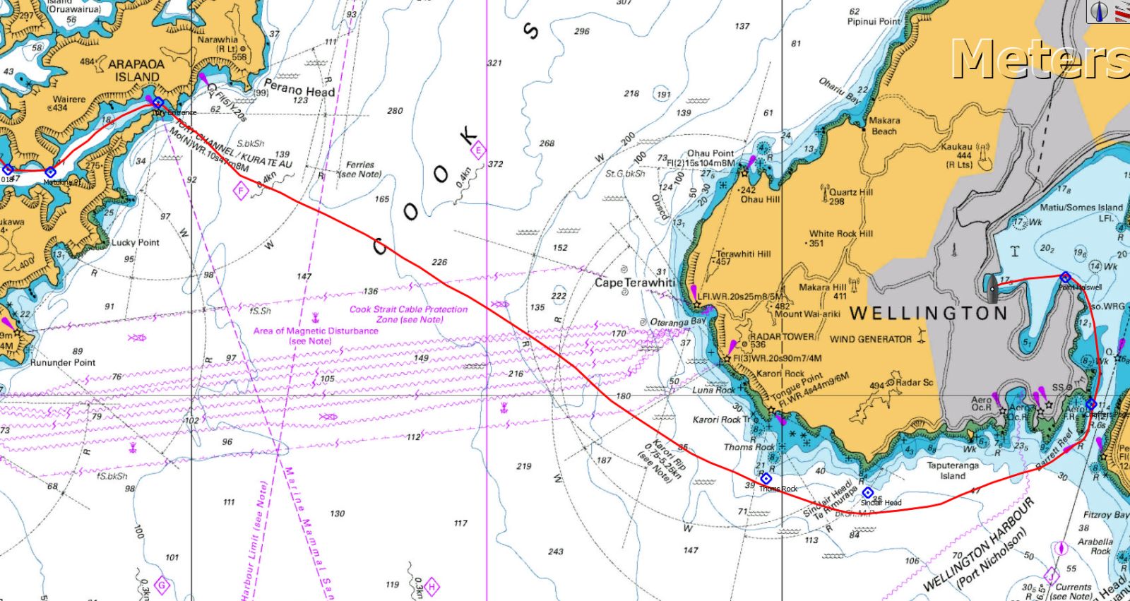 The plan is to sail across Cook Strait in company with Grenadier and Tamerlane to be in Waikawa for the Women’s Regatta the next week. After monitoring the forecasts over the past few days Phil, Bill and I agreed that Thursday would be our best weather window for the crossing. To catch the correct tides our plan was to depart Wellington on Thursday at 0330 hrs which would have us arriving at Sinclair head (the beginning of the Karori Rip) one hour before high water Wellington.