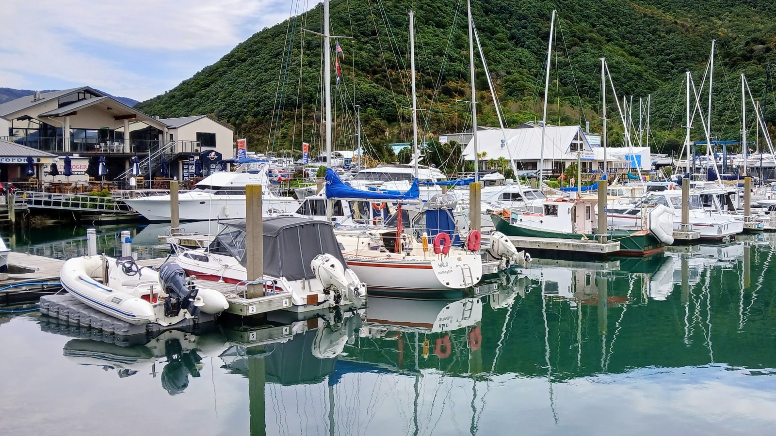Bit of a disaster on the last day of cruising The Sounds. I dropped my phone over the side! Quite an unsettling feeling having no means of communication. I needed to get a replacement phone ASAP. Warren and Lyn Rankin, who have their car (and boat) in Waikawa, were going in to Blenheim in the morning and offered to take me with them. The guys at the One.nz store very efficiently issued me a new SIM card loaded with my old number and sold me a new X-Cover 7 phone. I loaded up all the apps while using the store wifi. Everything restored, even photos I’d taken yesterday were backed up!