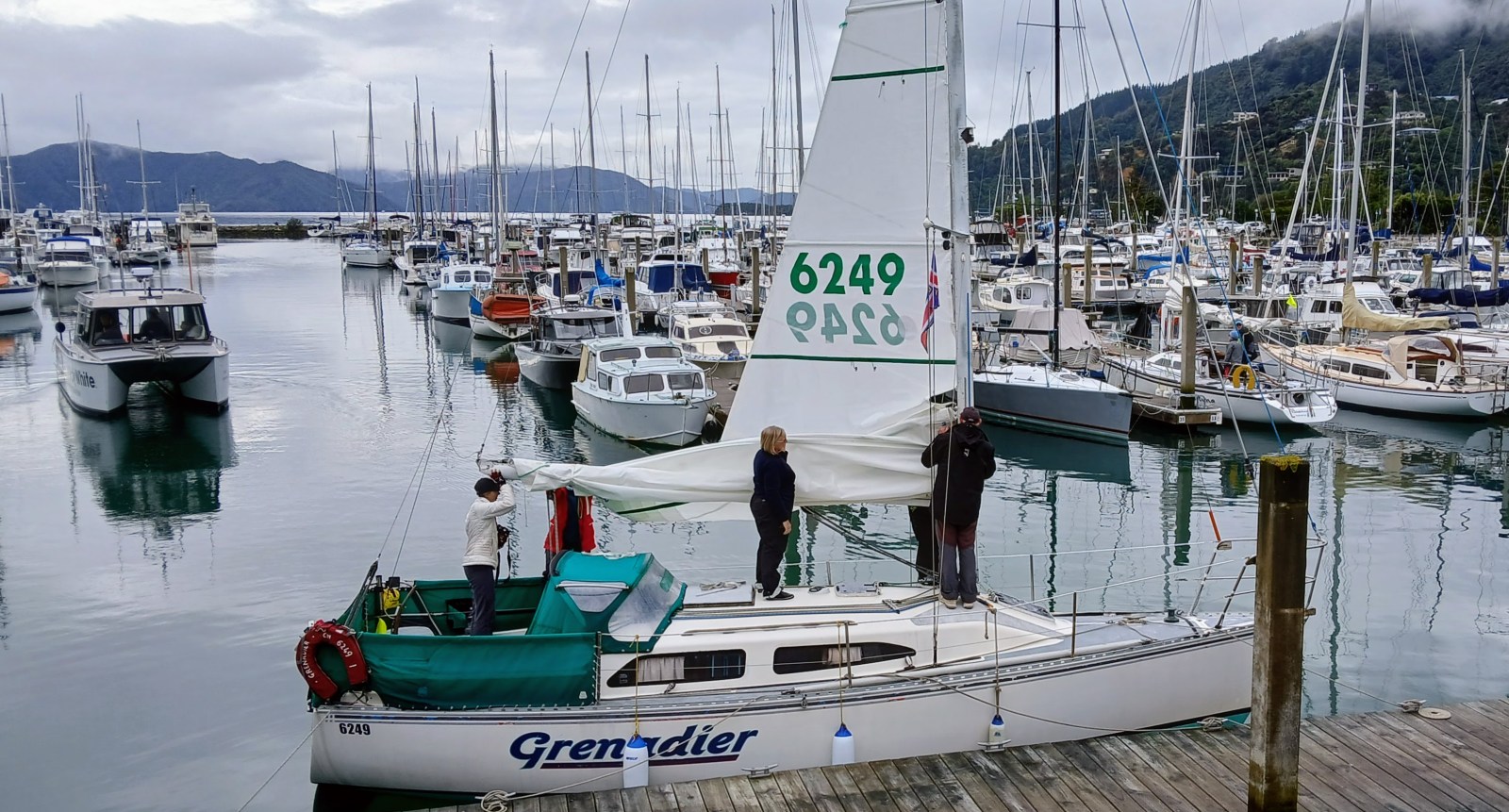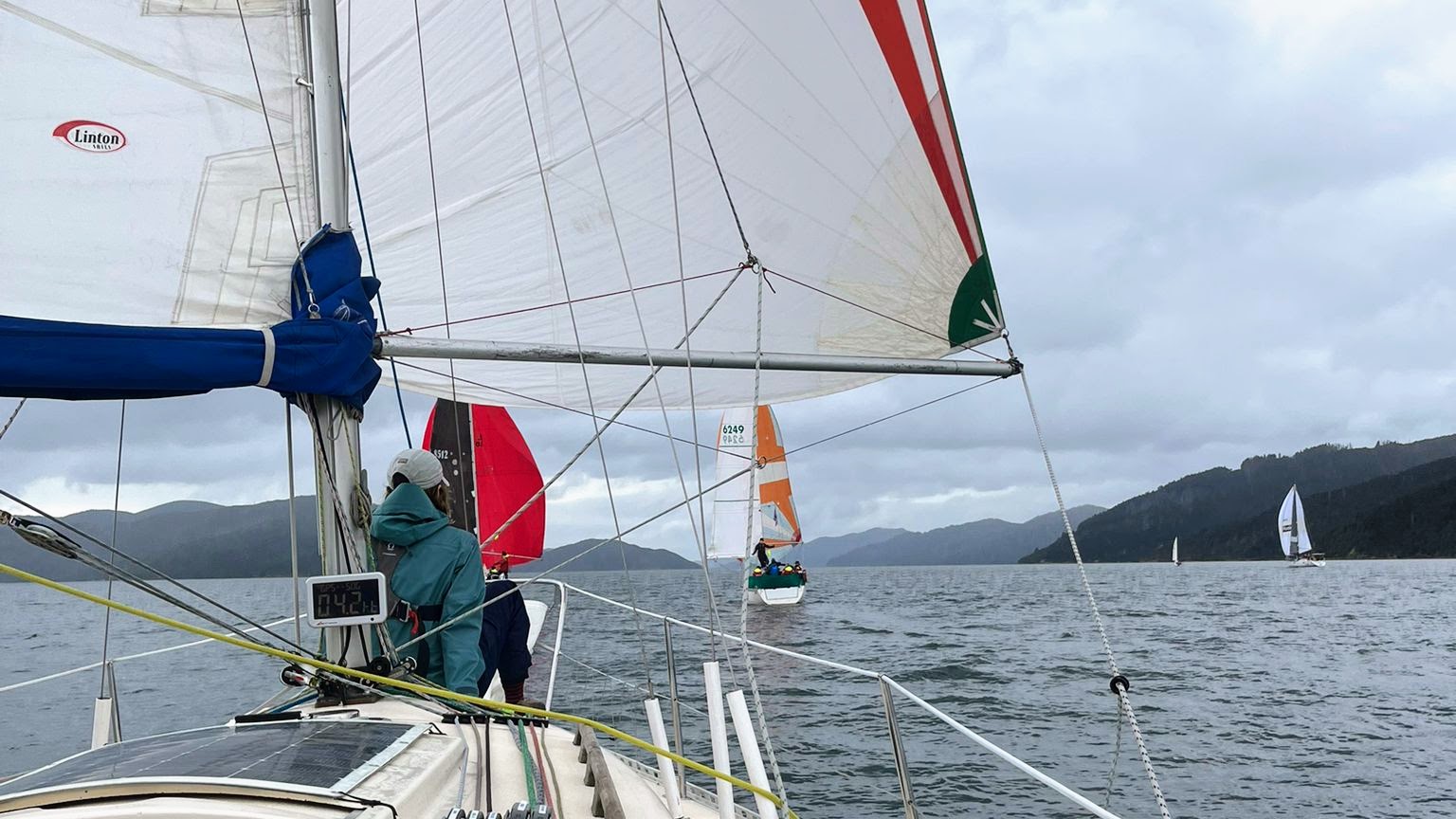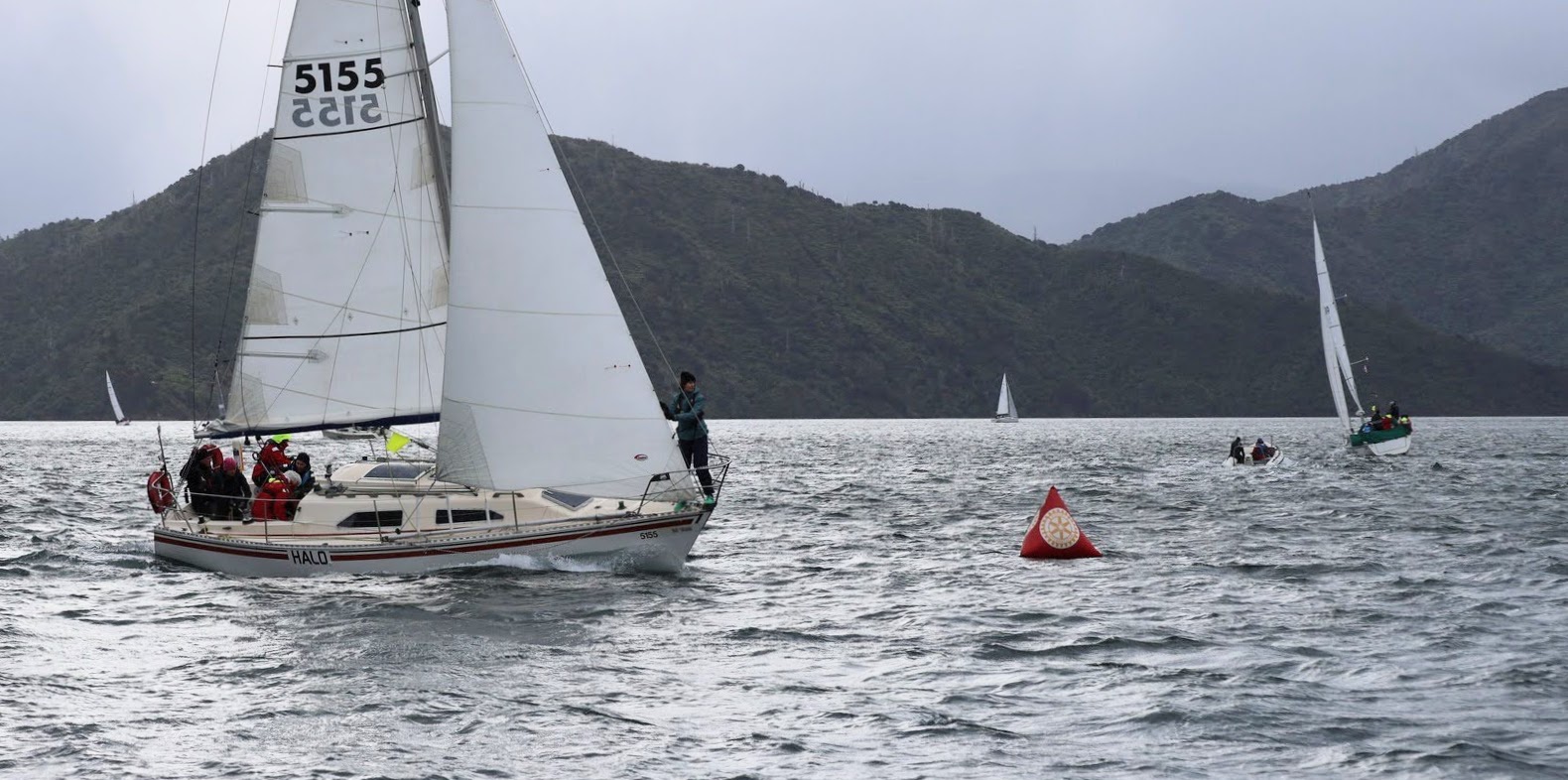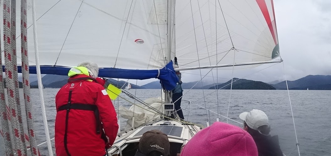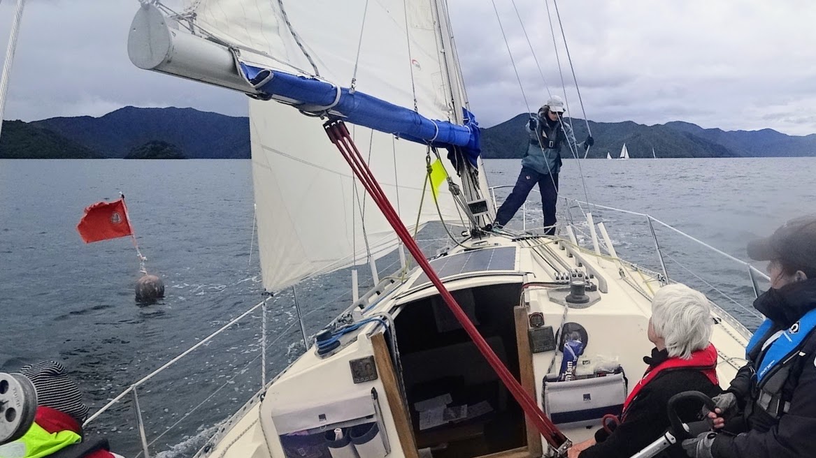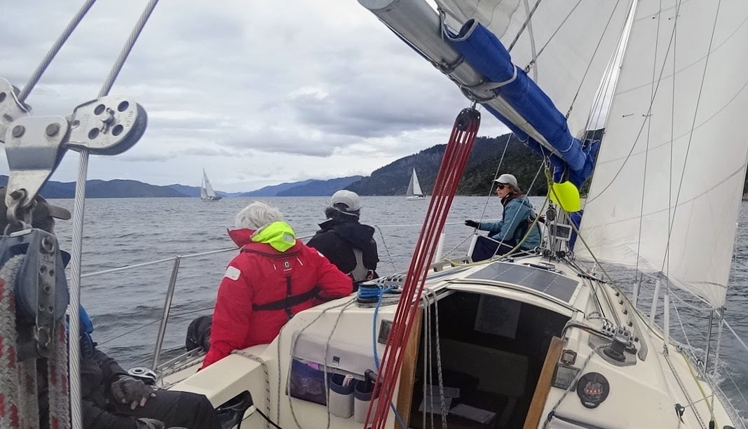 The program today would be a long race up Queen Charlotte Sound followed by round-the-buoys harbour race. The courses would be announced on ch. 77 before each race.
