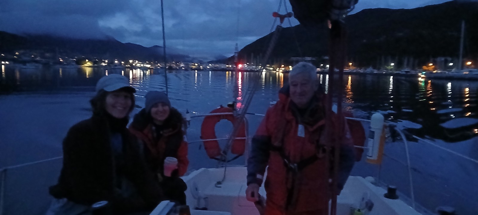 Murray, Funny and Leah came down to Waikawa Marina and joined me on Halo at 5.30 am and we did the safety briefing. I called Maritime Radio on ch. 16 to log our trip report and turned on our navigation lights. A few minutes before 0600 hrs we cast off from Waikawa Marina in a dark and very calm morning.