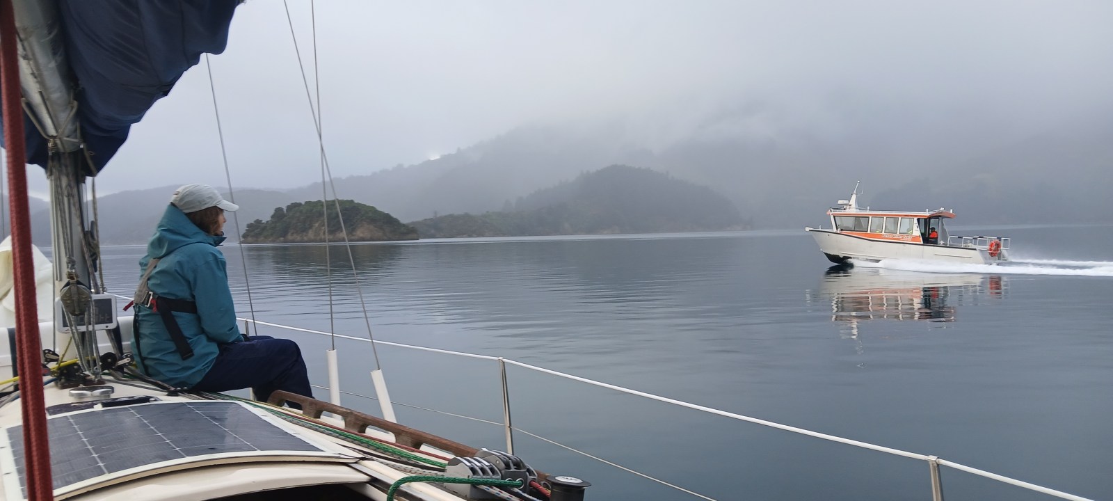 In Tory Channel another Wellington boat Annie joined us as we passed Ngaruru Bay. Still only about 5 kts of light breeze as the fog started to clear.