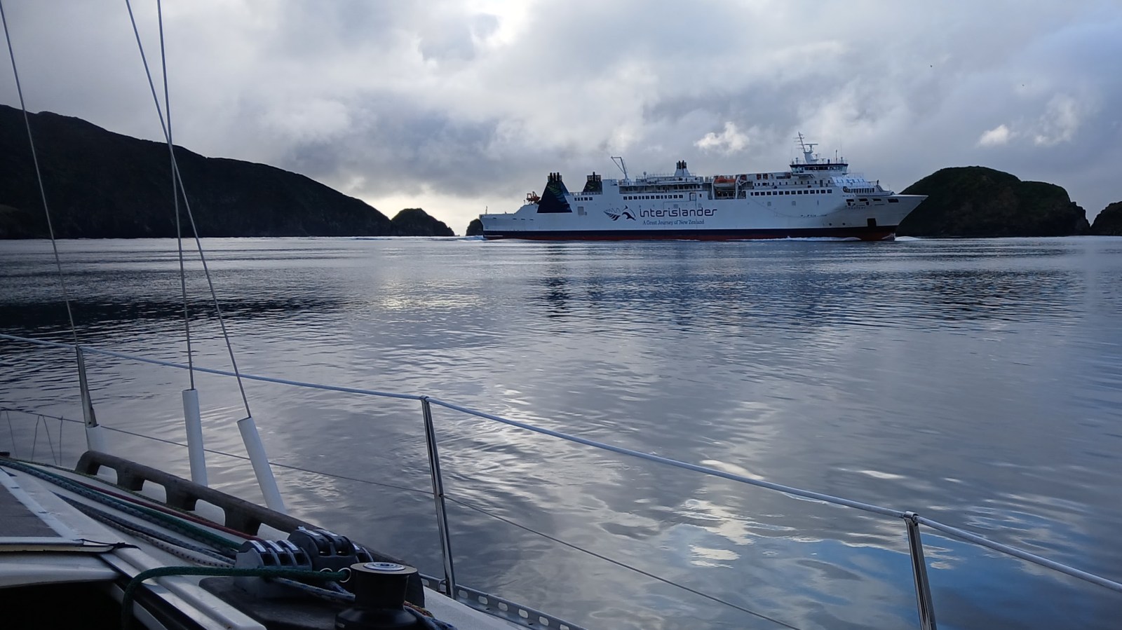 As we neared the Tory Channel entrance we we heard Grenadier and Tamerlane call “all ships” to transit West Head about an hour earlier than us. We saw the Aratere on the AIS and hugged the bays to keep clear as she steamed into the channel.