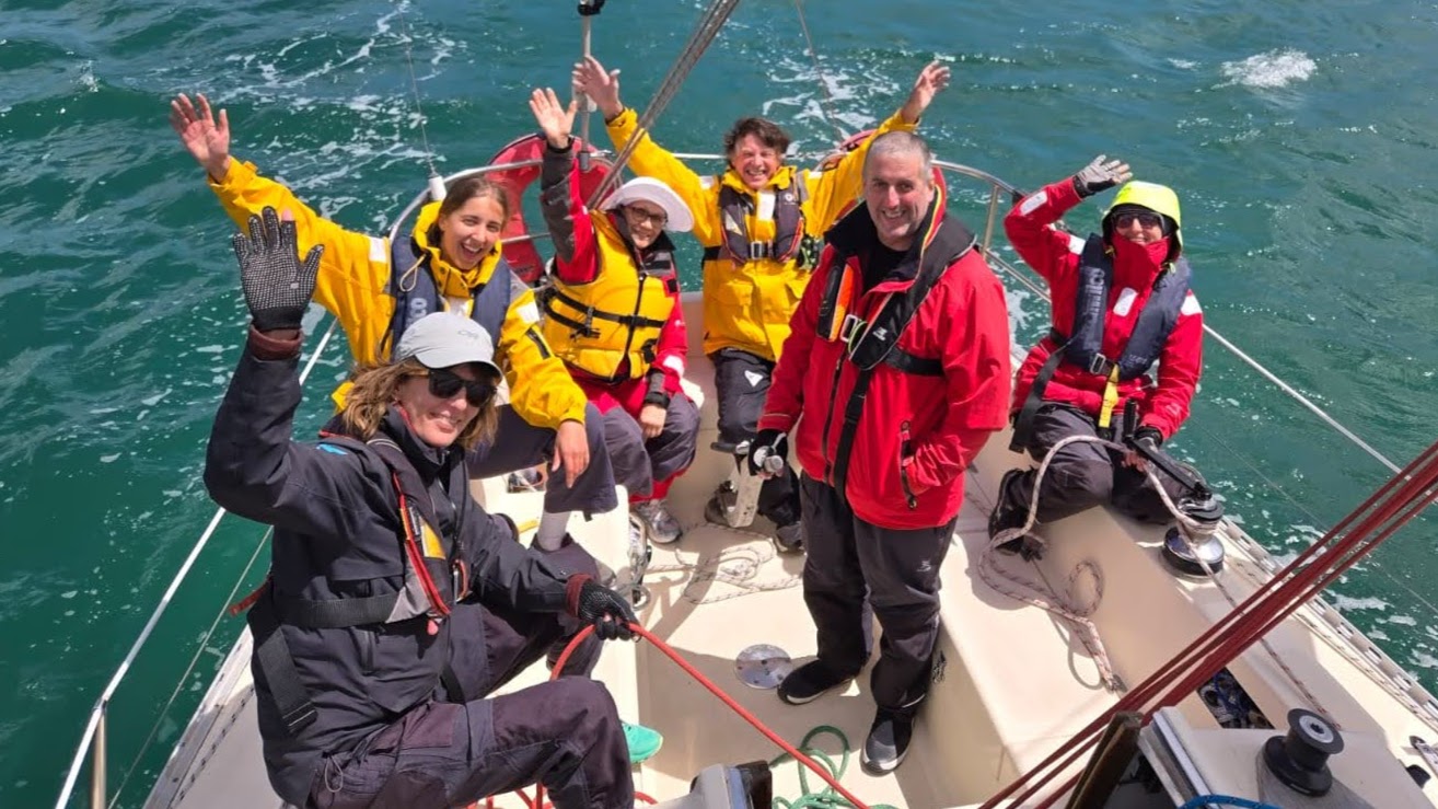 We put a reef in the mainsail and with the small no. 3 jib rigged, we cast off at 1307 hrs. Jamie took charge of the helm as we hoisted the sails. Funny handled mainsheet and the rest of us did sail trim. The wind was manageable most of the time but with frequent gusts to keep up the excitement.