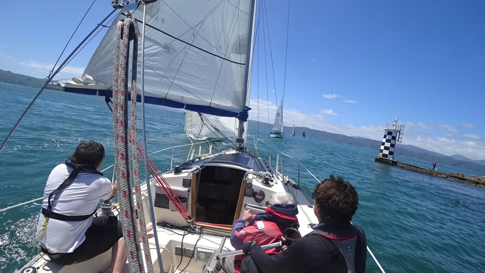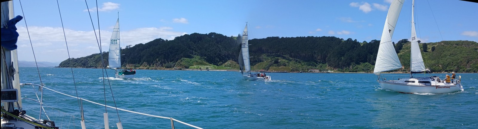 The course was announced: Start – Mark 6 (p) Front Lead – Mark 18 Days Bay – Finish. On-the-water start from Pania. Murray joined us and we cast off at 1240 hrs and headed for the start line.