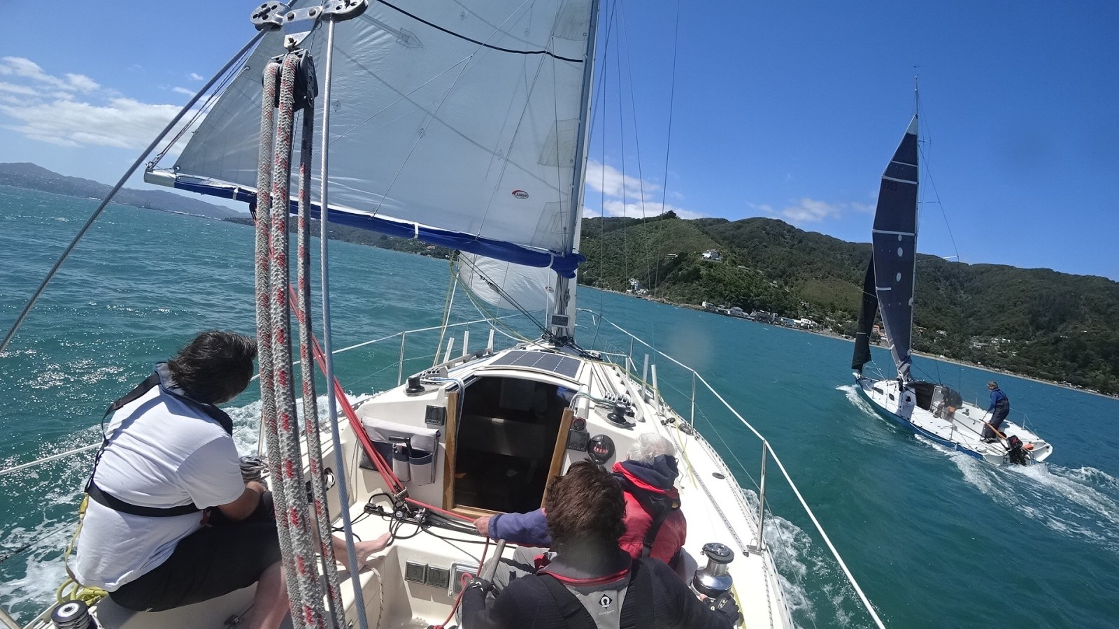 We passed Upcycled on the mark rounding before settling in to a broad reach down towards the next mark at Days Bay.