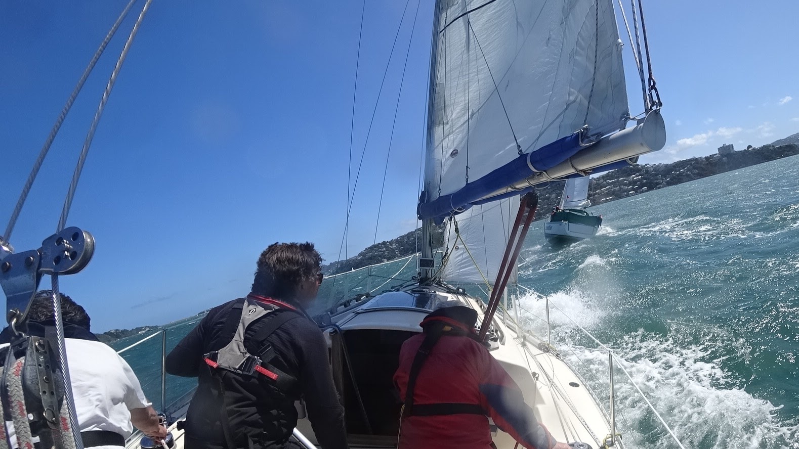 One last tack and we were across the finish line set by Pania. We then sailed back to Chaffers berthing Halo at 1540 hrs. A full-on fun sail and pretty exhausting day!