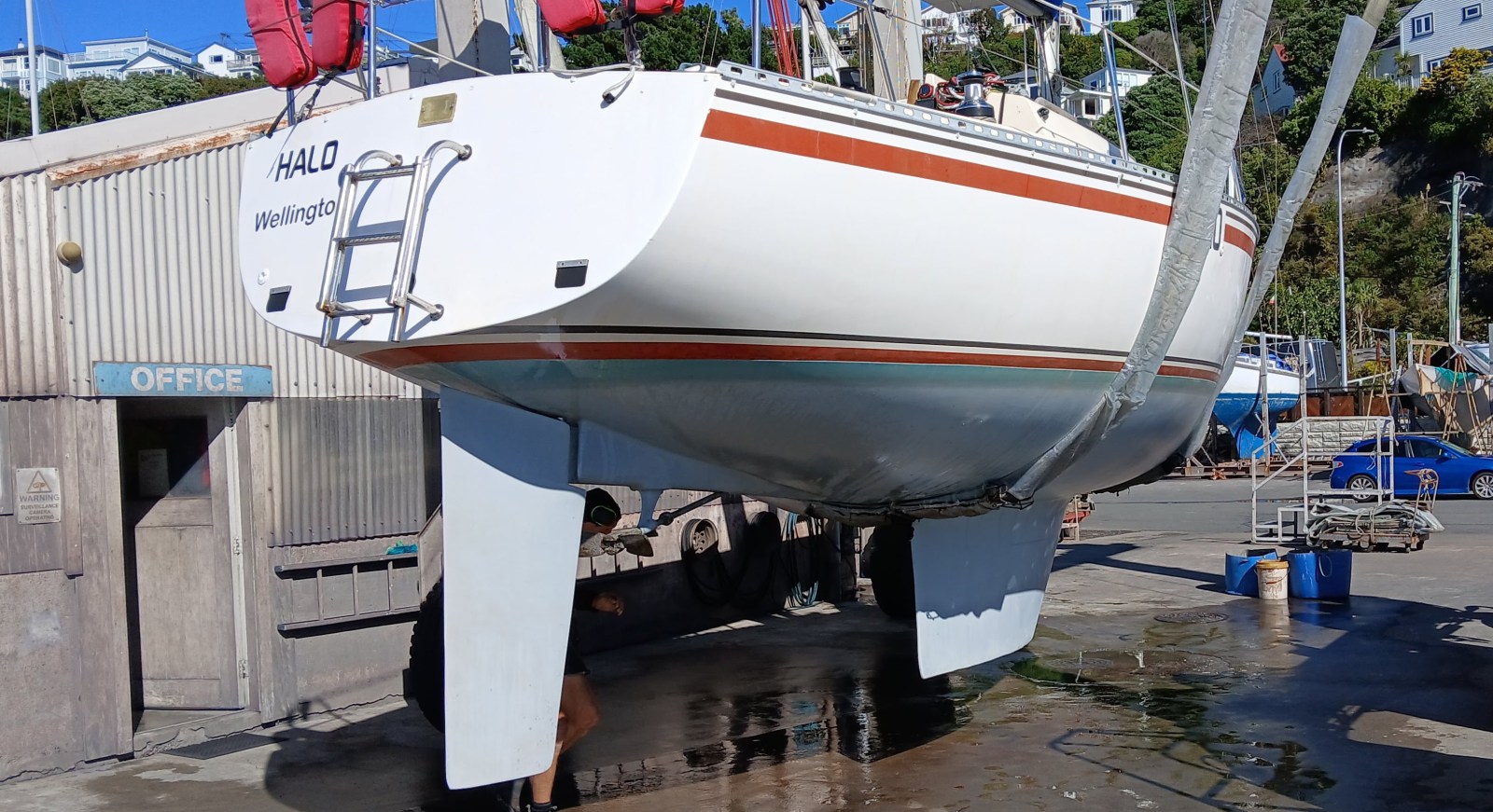 Sven was on the Evans Bay travel lift ready for our ‘quickslip’.