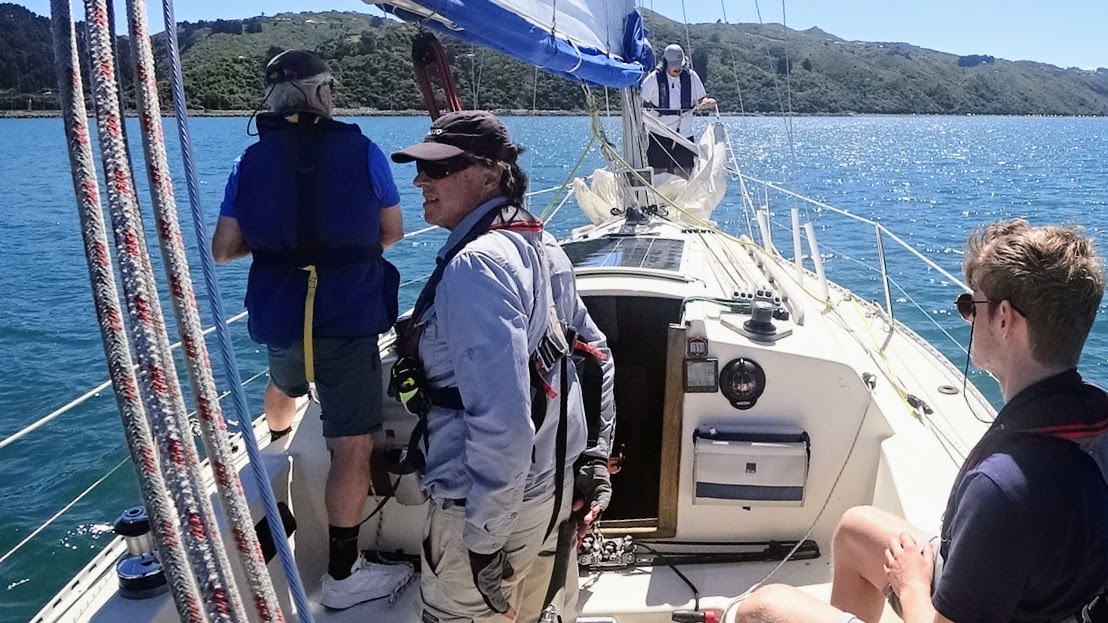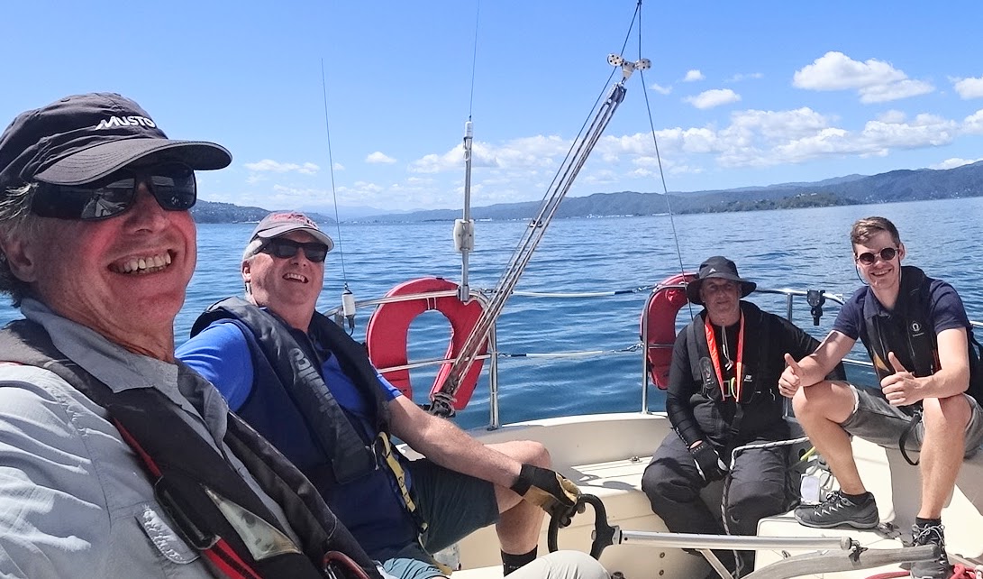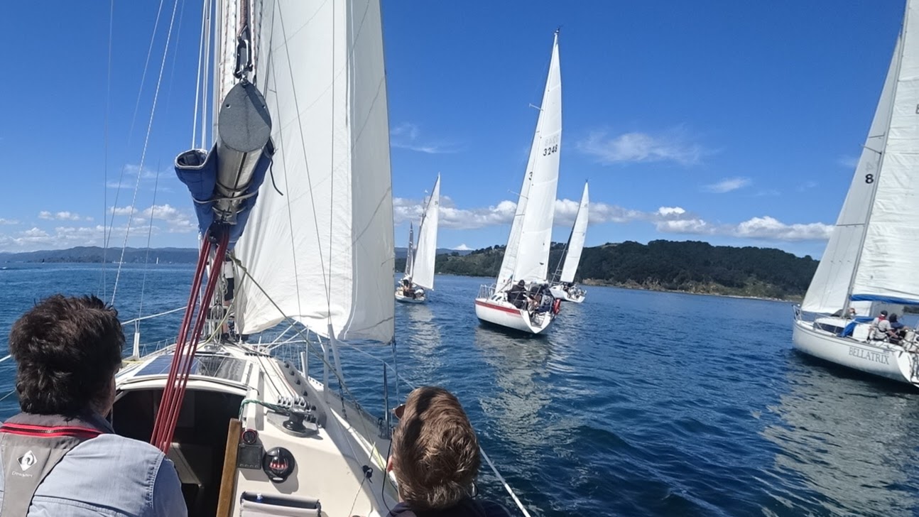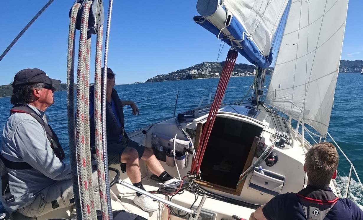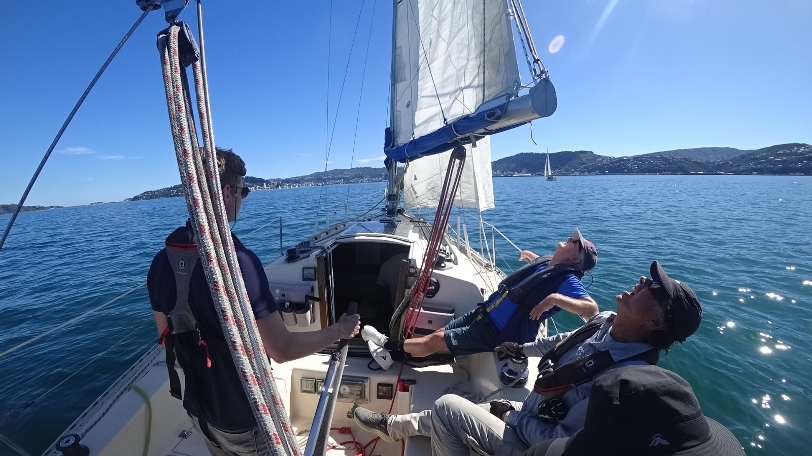 Once we rounded Mark 15 near Pt Halswell we tensioned up the sheets to sail close-hauled back up the harbour. Nice to cool off with a bit more breeze in our faces.