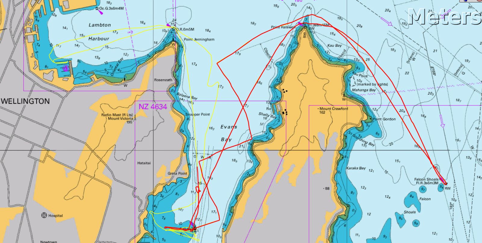 As we neared Pt Halswell we hoisted the genoa and dropped our kite. Grenadier managed to sneak in beside us as the wind died out to 2 kts in the shadow of Kau Bay. After a bit of toing and froing we managed to get ahead of Grenadier as the wind gradually increased.
