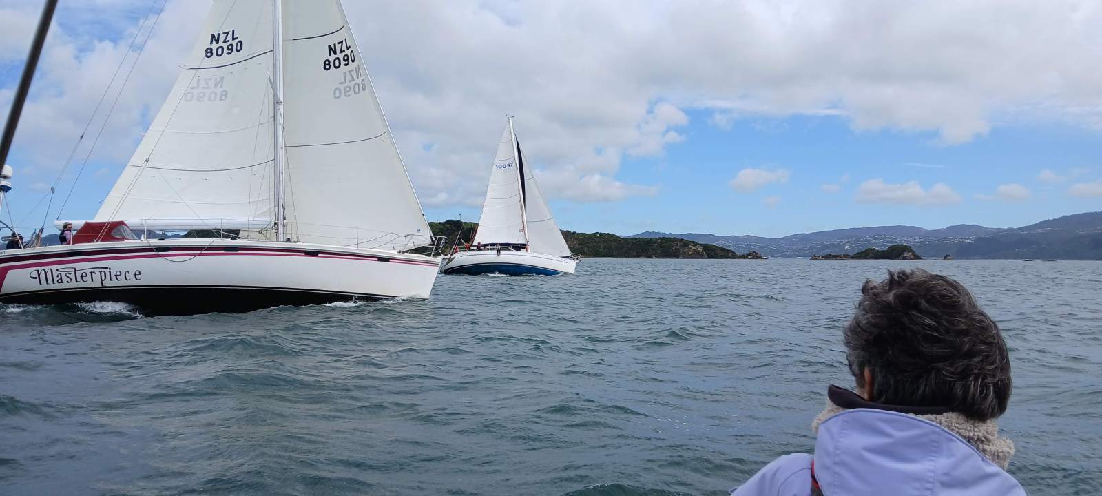Masterpiece were also having problems. Their mainsail was flapping badly. It looked like their reefing line had broken. This slowed them down and we were able to pass them.