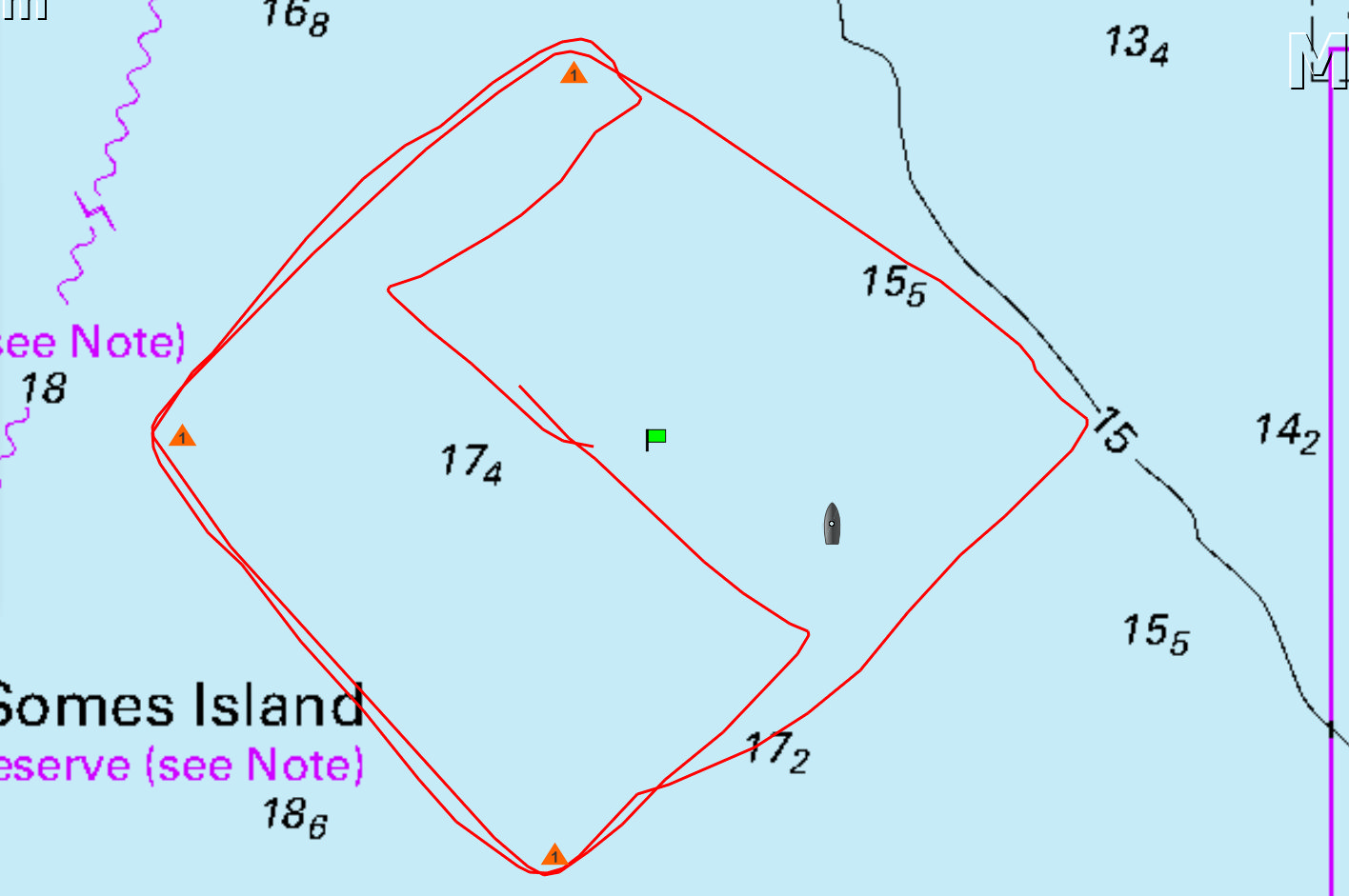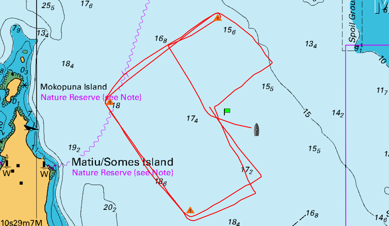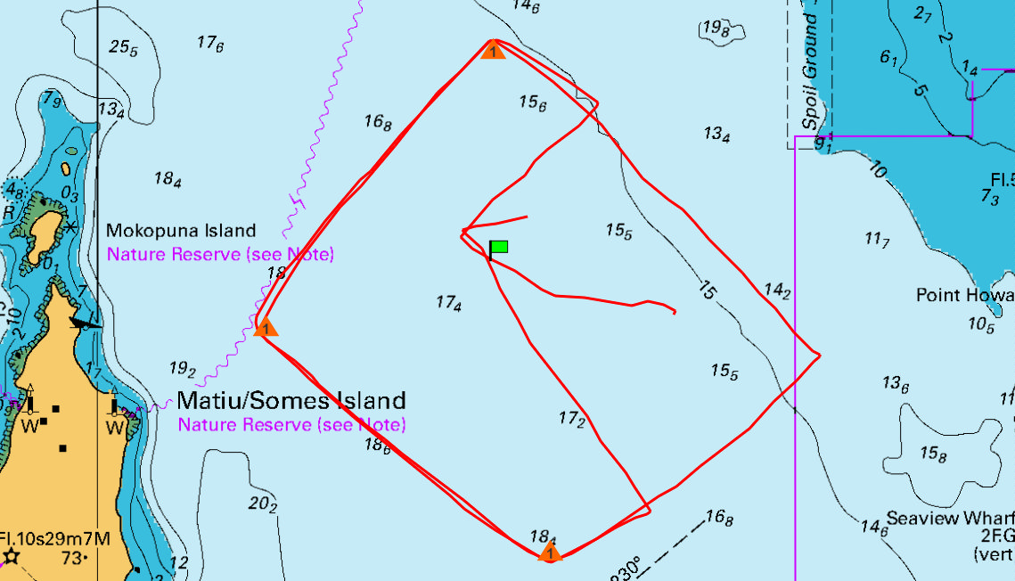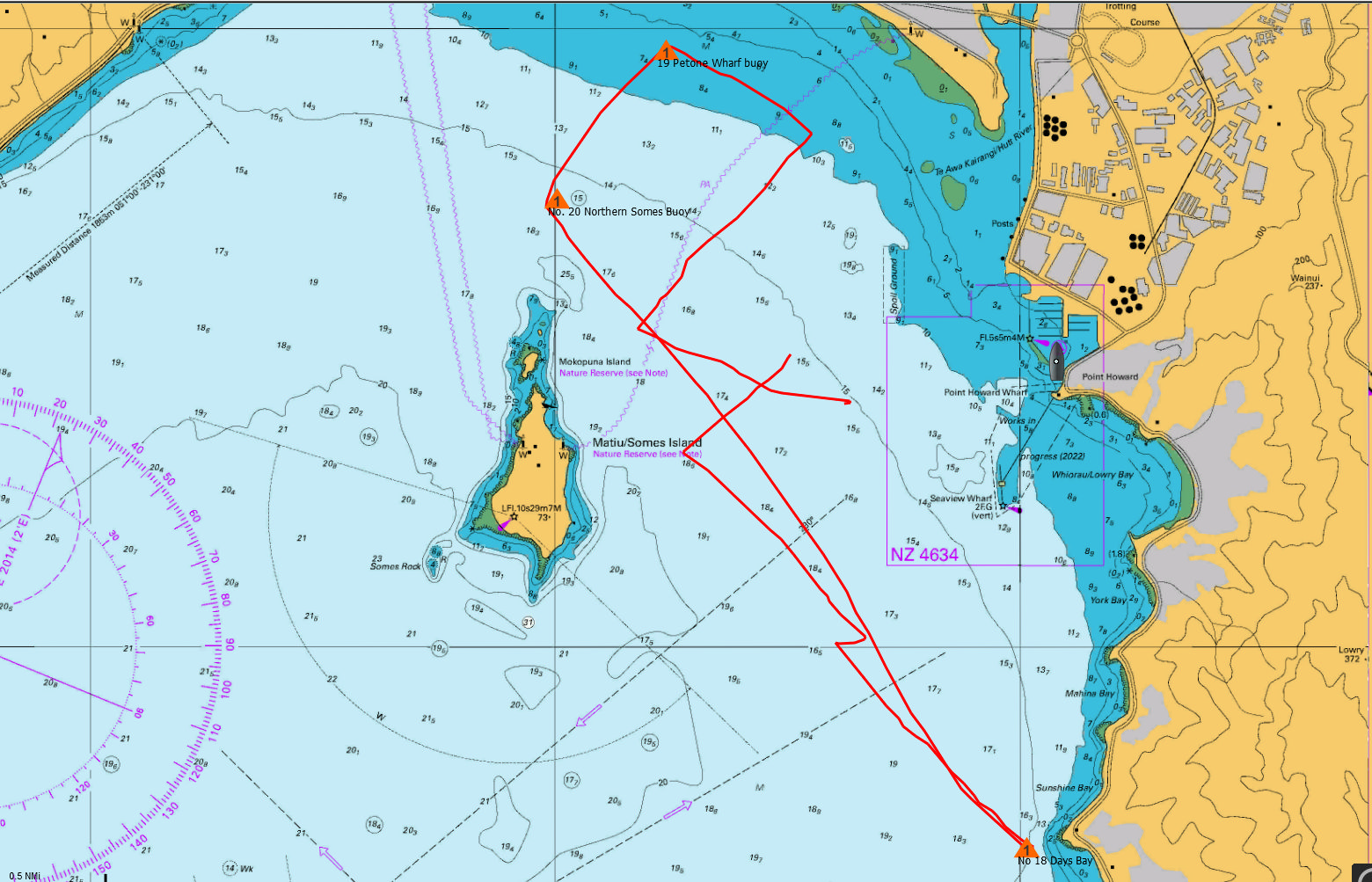 We rounded the Somes mark and sailed across the harbour to Day’s Bay on a broad reach averaging 6.5 kts and up to 7 kts. Expresso was going well and sailed past us. We gybed to lay the mark.