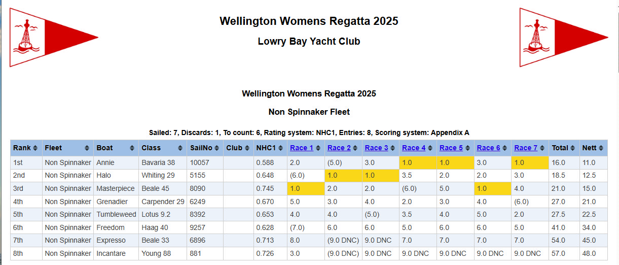 Full regatta results: https://www.sailwave.com/results/Wellington%20Womes%20Regatta%202025.htm