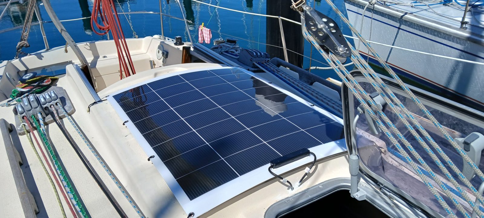 The old solar panel suddenly stopped working. It was five years old so I guess that’s about par for the course for semi flexible panels in a marine environment. Replaced with the same model from Jaycar: Powertech 100W.