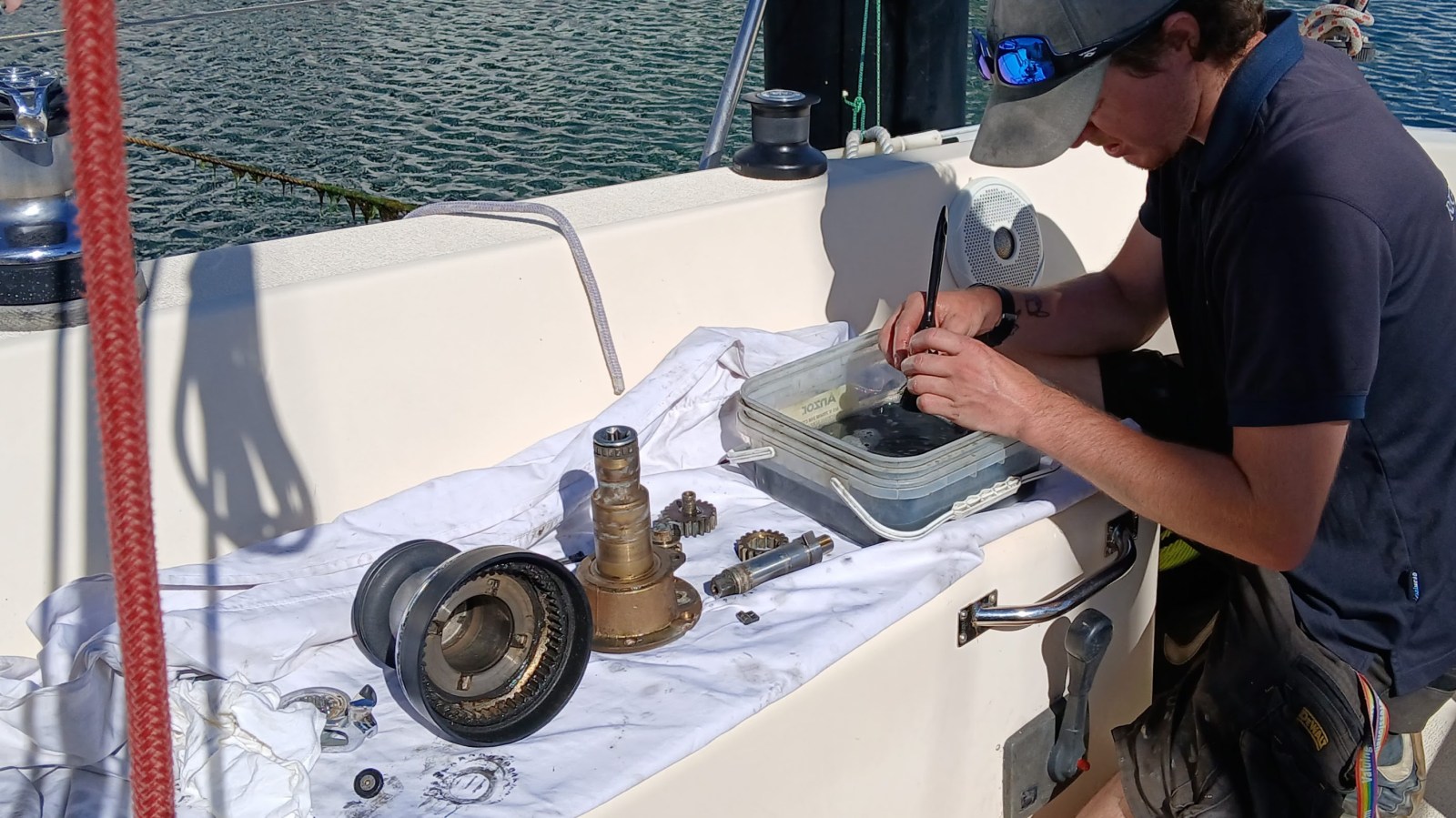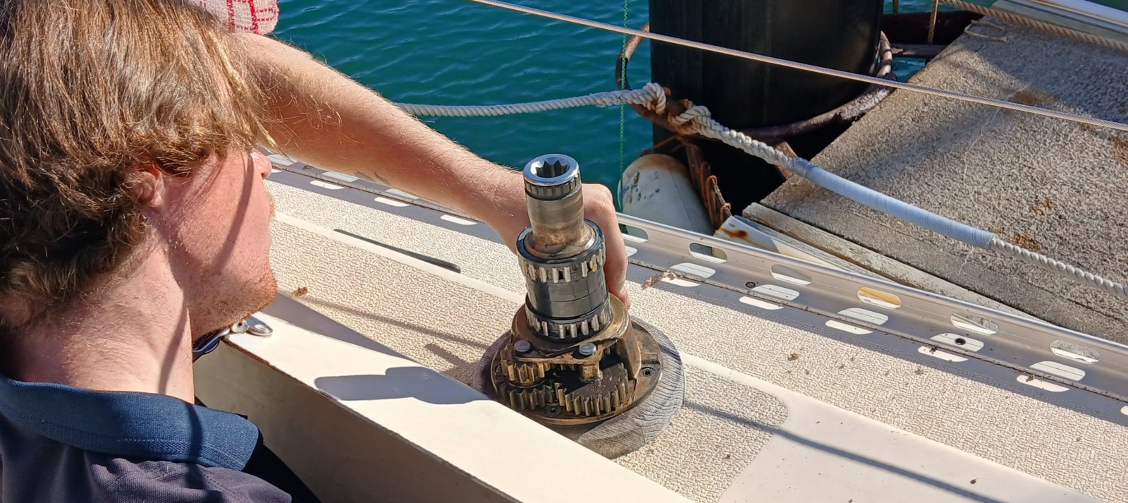 Both Harken 40 self-tailing jib sheet winches serviced by Fergus of Rigging and Marine.