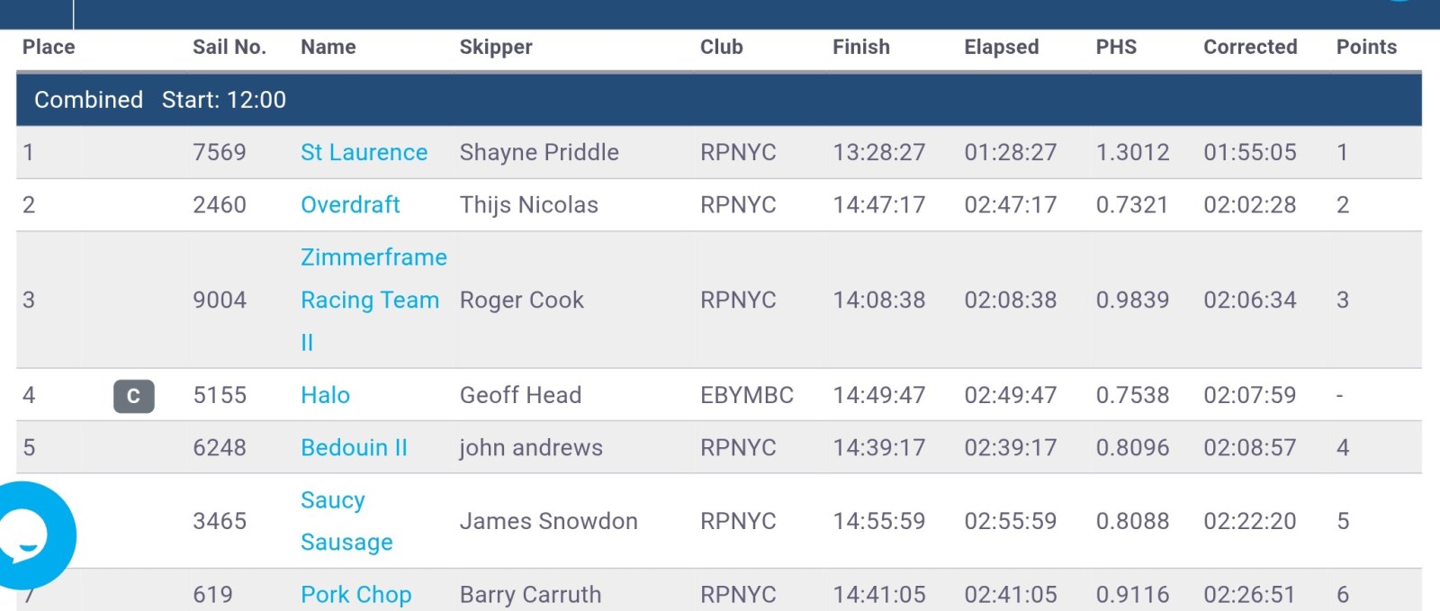 We finished the race at 1450 hrs and docked Halo back in her berth at Chaffers Marina.