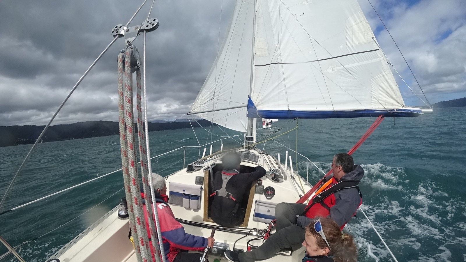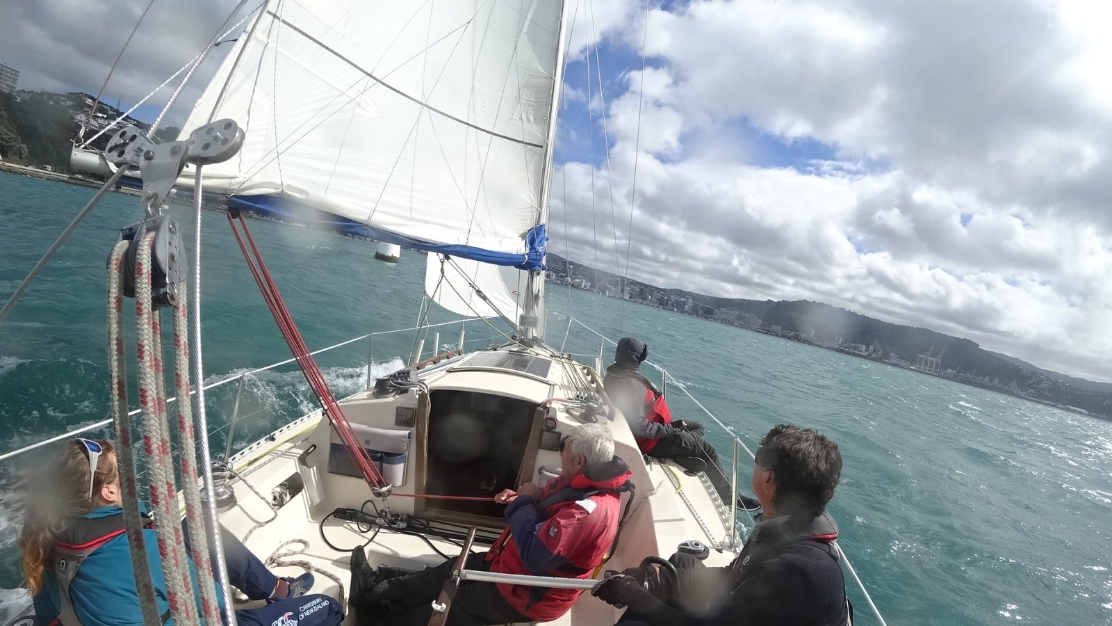 Our new crew member was Jessica from Southampton UK, who is here in Wellington doing post-grad studies in climate science. After the Halo safety briefing we cast off with Jess and Jamie on sail trim, Murray on mainsheet, and me on helm.