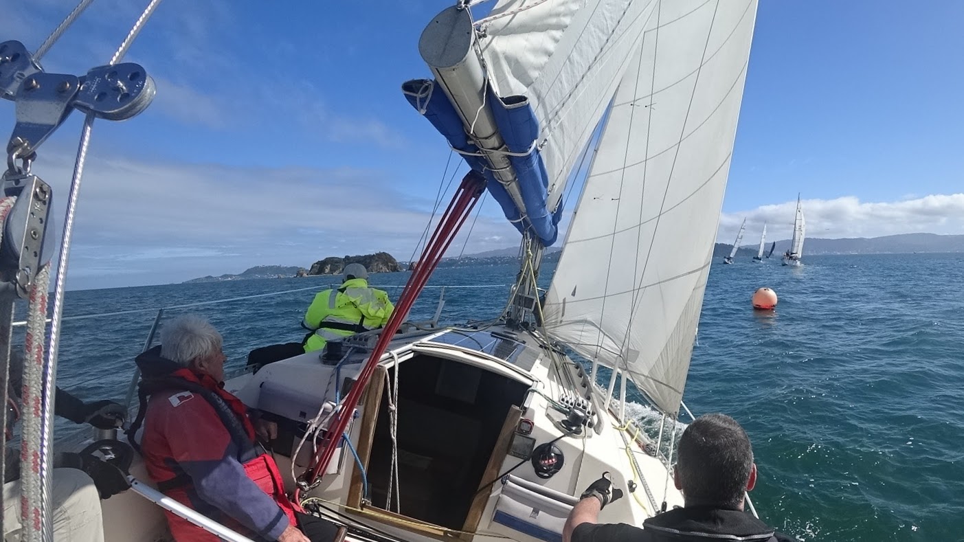 Then it was close hauled up Evans Bay across to the west side. We enjoyed a good lift as we neared the Balaena Bay point before tacking at the last minute. Tamerlane were unable to catch us.