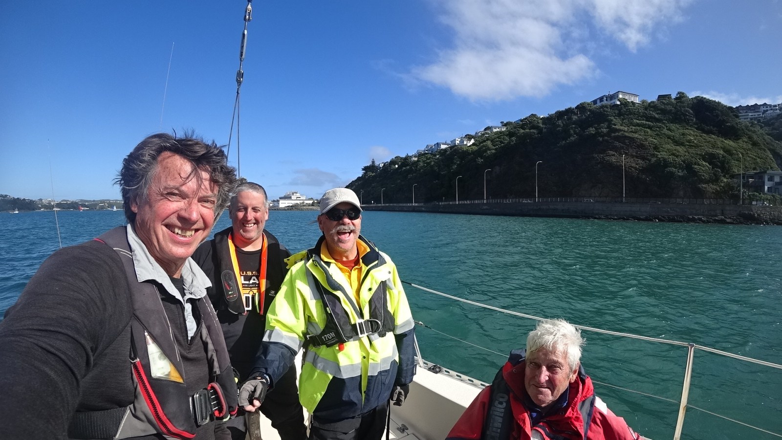 A beautiful Wellington day for the last race of the EBYMBC Summer Series. (The sponsor of the series is The Wash House, a commercial and domestic laundry). Eduardo and Jamie joined Halo at Chaffers Marina and we rigged the no. 1 heavy genoa and full main. With Eduardo on helm we had a nice sail round to Evans Bay where Murray joined us.